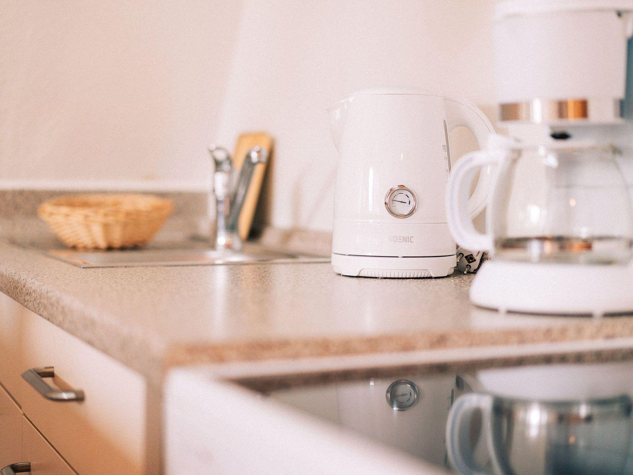 gemütliches Wohnzimmer mit TV zum Entspannen, zum Teil offene Küche mit Kaffeemaschine, Wasserkocher, Toaster, Mikrowelle, Herd mit Ofen, Badezimmer mit Dusche/ WC.
