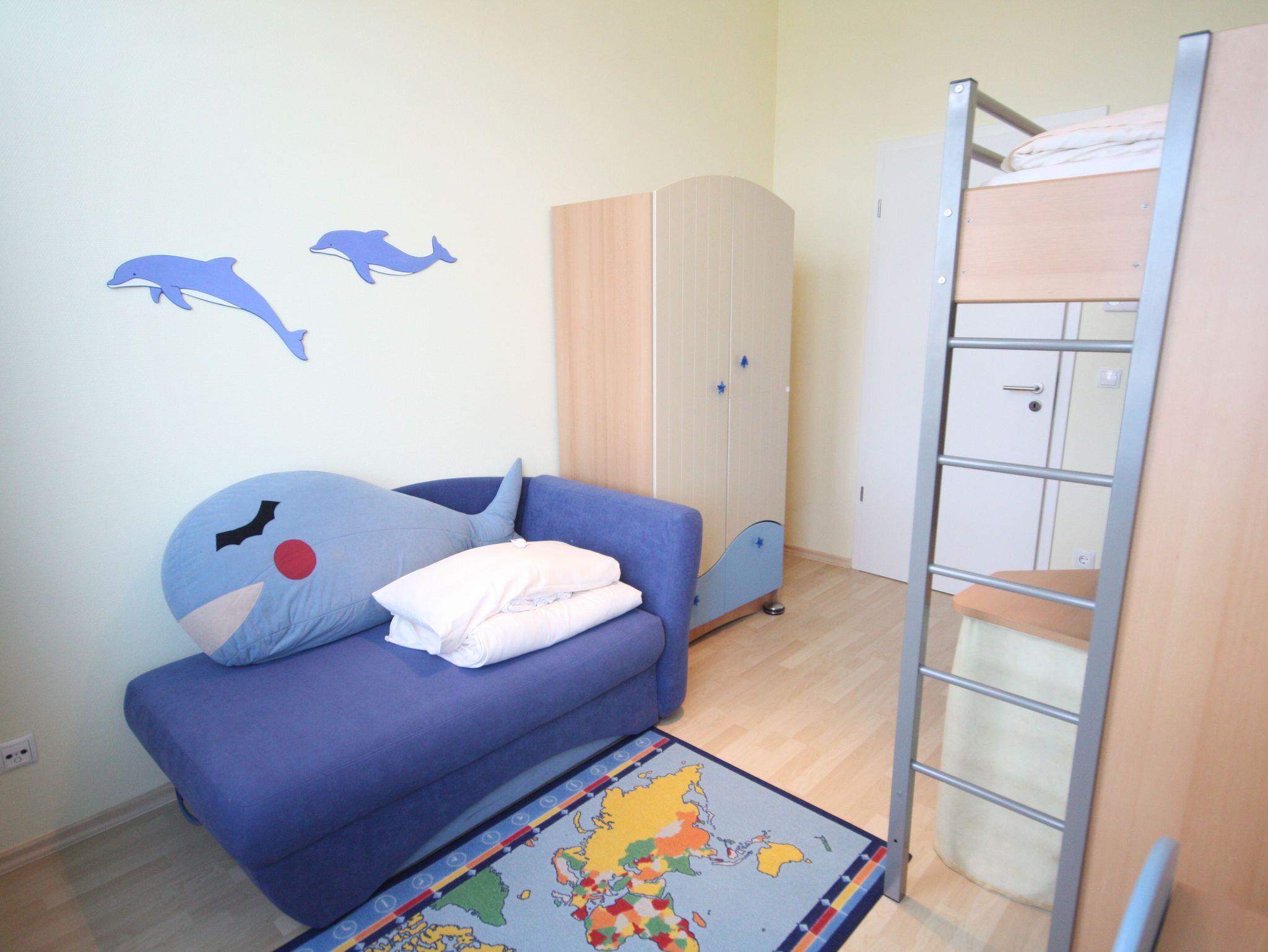 Neben dem großen Wohnzimmer, gibt es ein schönes Doppelbettzimmer und ein Kinderzimmer mit Etagenbett.