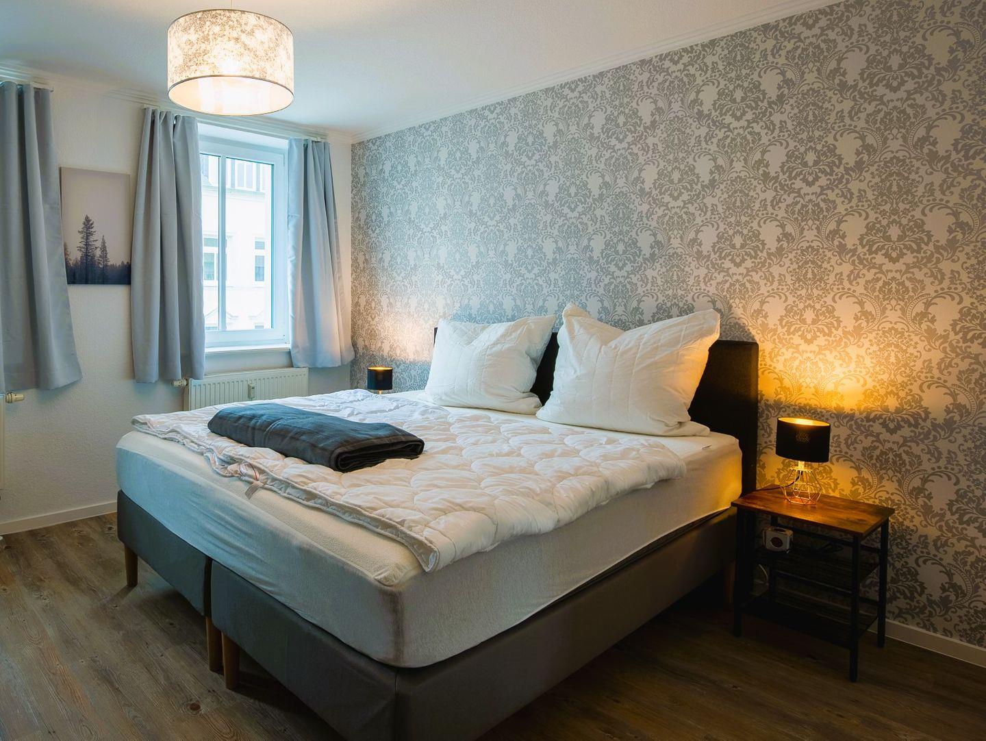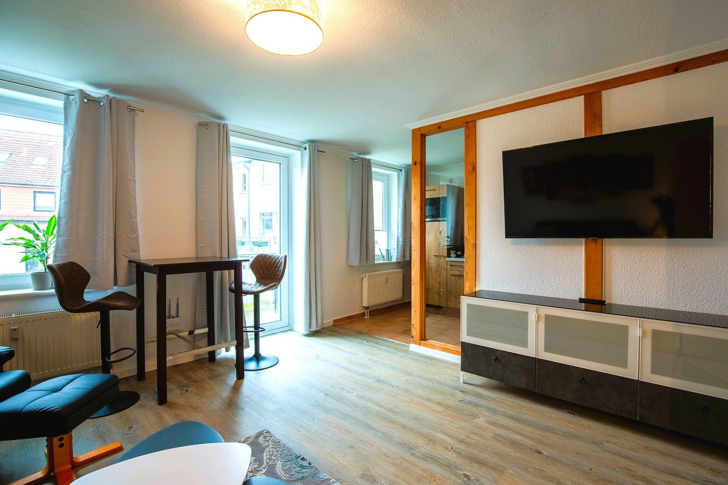 55m² Apartment mit Schlafzimmer mit Doppelbett und bequemen Schlafsofa im Wohnzimmer für 1-4 Personen mit Süd-Balkon, voll eingerichteter Küche, modernem Wohnzimmer und Bad mit Badewanne/Wannendusche im Szeneviertel.