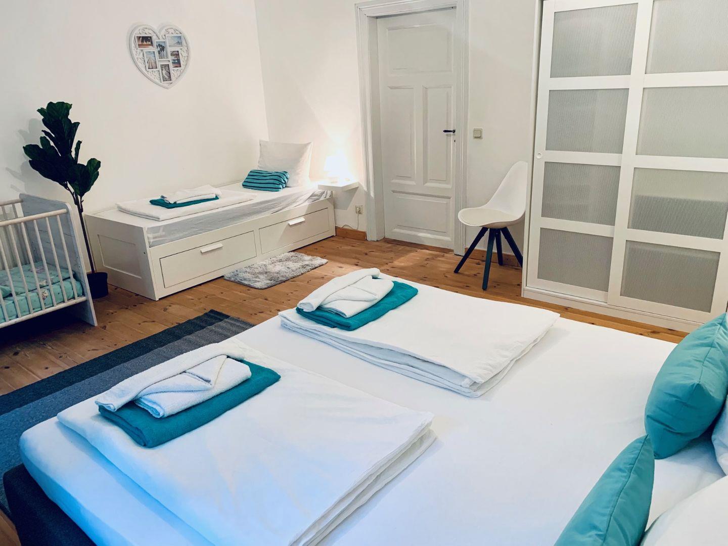 Im Obergeschoss finden Sie eine weitere Wohneinheit. Es gibt hier 2 separate Schlafzimmer mit jweils einem großem Doppelbett. Weiterhin finden in jedem Schlafzimmer 2 weitere Personen Platz zum Schlafen. Vom Südbalkon kann man in den wunderschönen Park und zum Spielplatz blicken. Ein großes Wohnzimmer mit Smart-TV 75Zoll läd zu gemütlichen Filmabenden ein. Hier ist eine kleine Küche zum Zubereiten Ihrer Speisen. Das Badezimmer mit Eckbadewanne bietet viel Raum zum Wohlfühlen.