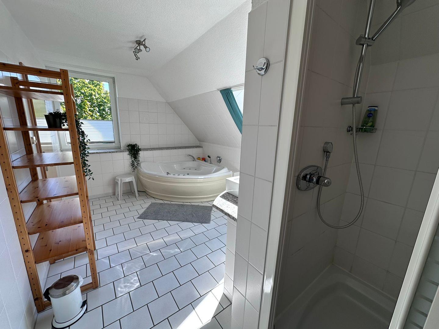 Im Badezimmer befinden sich eine Dusche, eine Whirlpoolwanne und moderne Sanitäreinrichtungen. Für zusätzlichen Komfort stehen Ihnen Annehmlichkeiten wie Haartrockner, Waschmaschine, Bügeleisen und Reinigungsmittel zur Verfügung. Darüber hinaus ist die Ferienwohnung rauchfrei, was es zu einem idealen Ort für Nichtraucher macht.