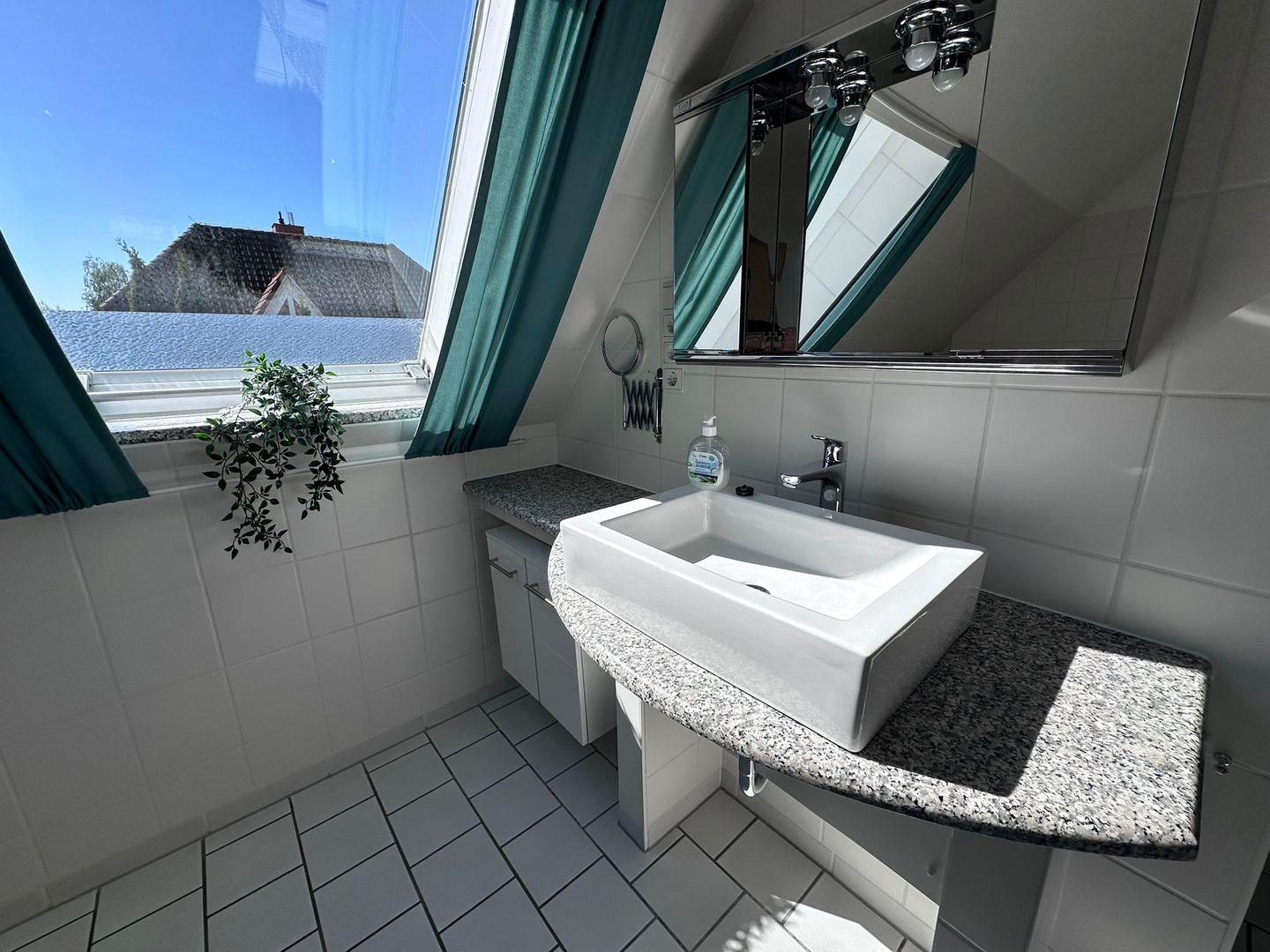 Die Ferienwohnung ist in der ersten Etage und umfasst insgesamt drei Zimmer, darunter zwei gemütliche Schlafzimmer, in denen Ruhe und Erholung garantiert sind. Das stilvolle Wohnzimmer mit Fußbodenheizung, ausgestattet mit einer bequemen Sofaecke, lädt zum Verweilen ein. Ein großer Esstisch bietet genügend Platz für gesellige Abende oder gemeinsames Frühstück. Für Ihre Unterhaltung sind ein 24 bis 42 Zoll großer Fernseher, ein CD-Player und ein Radio vorhanden, die internationale Kanäle empfangen. Zudem stehen Ihnen zahlreiche Bücher, CDs und DVDs zur Verfügung, um Ihren Aufenthalt noch angenehmer zu gestalten.