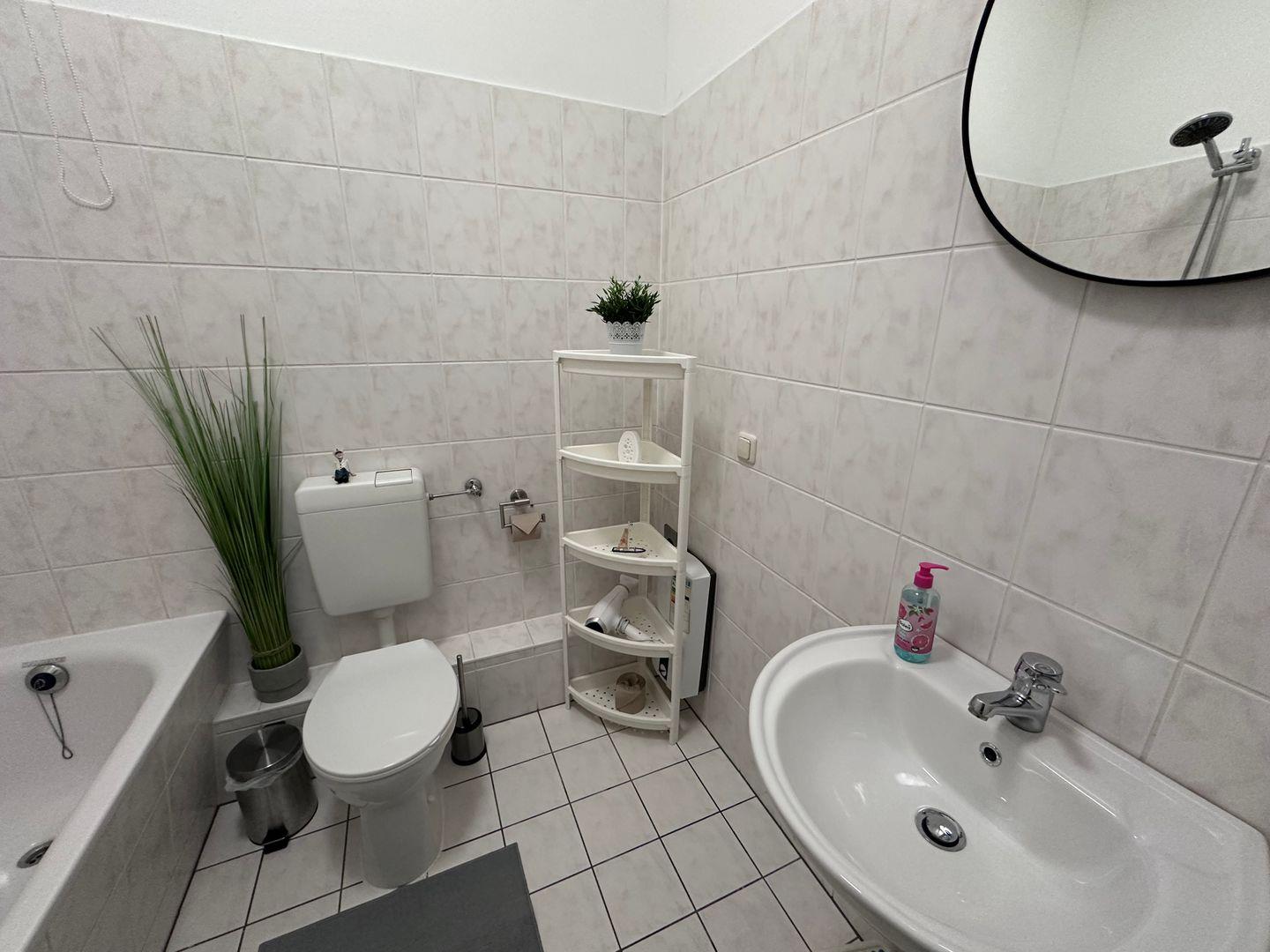 Das private Schlafzimmer ist mit einem komfortablen Bett ausgestattet, das für eine erholsame Nachtruhe sorgt, und im Wohnzimmer befindet sich die Möglichkeit für zwei zusätzliche Schlafplätze. Ein Badezimmer mit Badewanne, WC und Haartrockner bietet Ihnen alle Annehmlichkeiten, die Sie benötigen. Die Wohnung ist zudem rauchfrei, so dass Sie sich in einer frischen und gesunden Umgebung entspannen können.