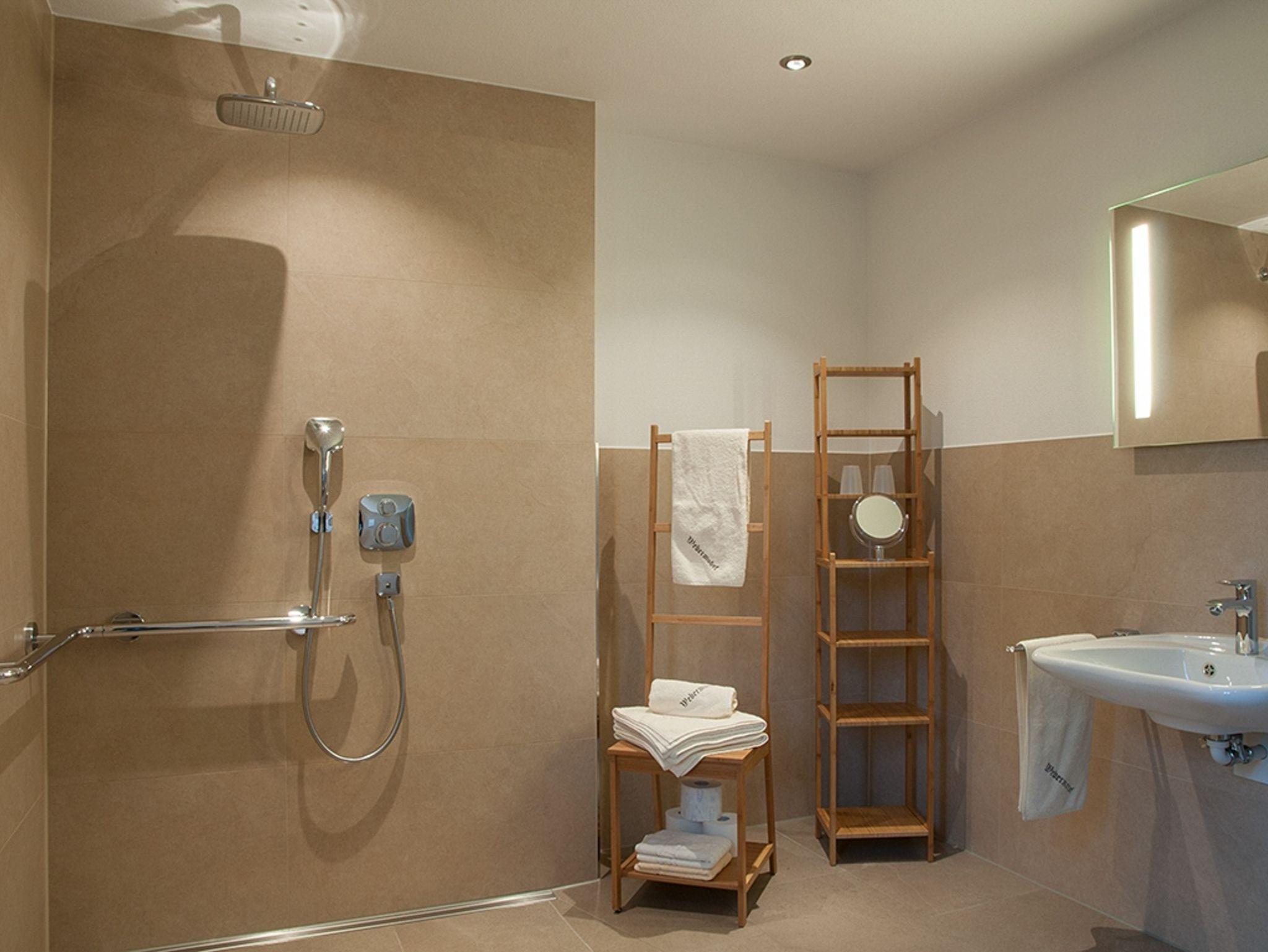 • Ein barrierefreies Bad mit Wohlfühldusche, WC und Föhn