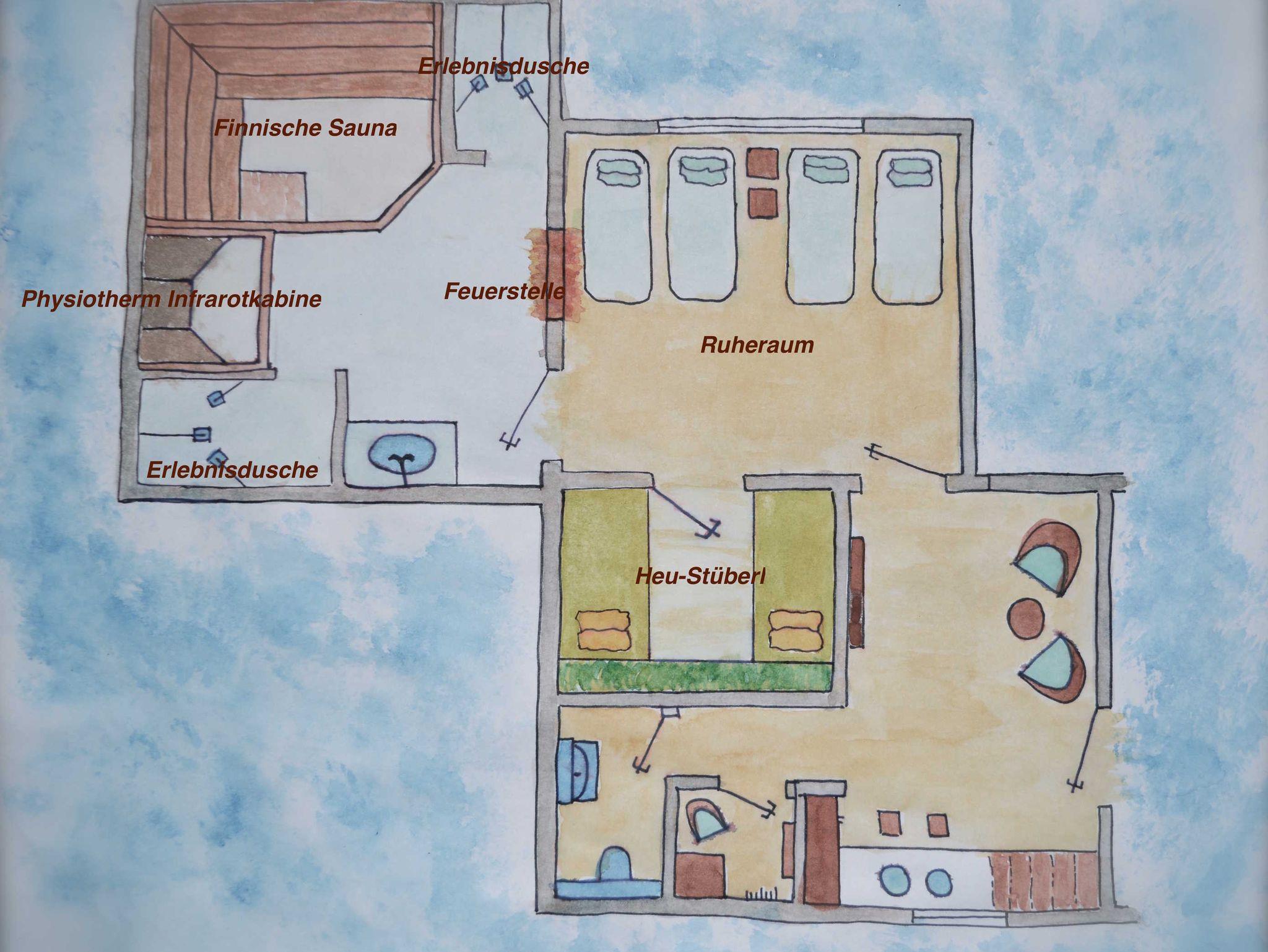 Zurück in Ihrer Ferienwohnung wartet unser hauseigener Wellnessbereich auf Sie. Tanken Sie frische Energie in unserer finnischen Sauna, der Infrarot-Wärmekabine und in unserem Alm-Traum-Raum.