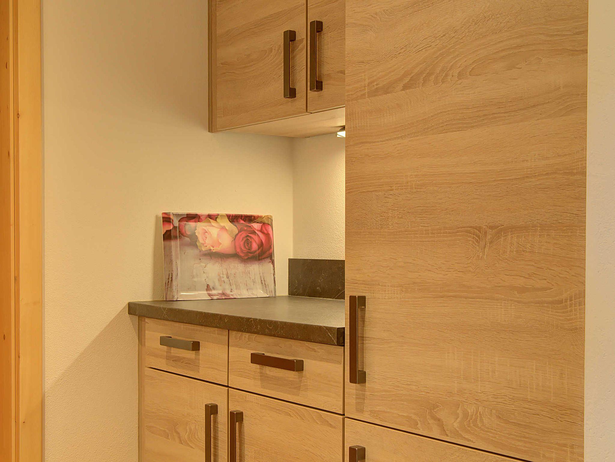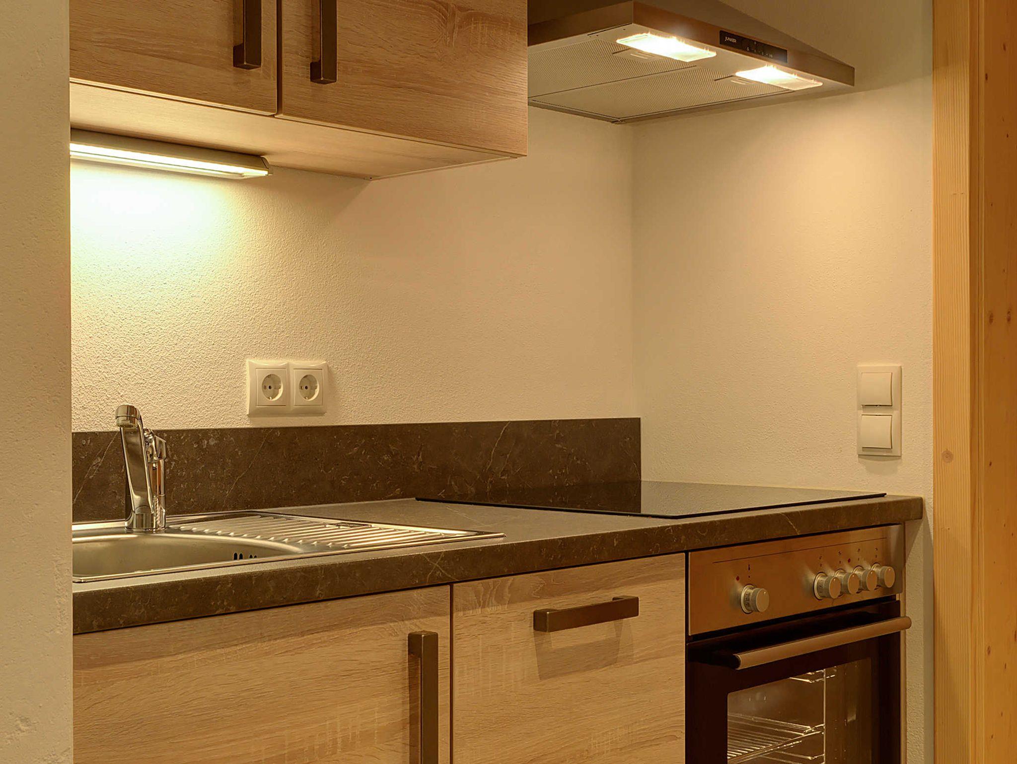 Seperates Schlafzimmer und vollausgestattete Küche mit Spülmaschine und Backofen. Gemütliche Sitzecke mit Flach-TV. Der Balkon mit freier Sicht auf die umliegenden Berge lädt zum Verweilen und Entspannen ein.