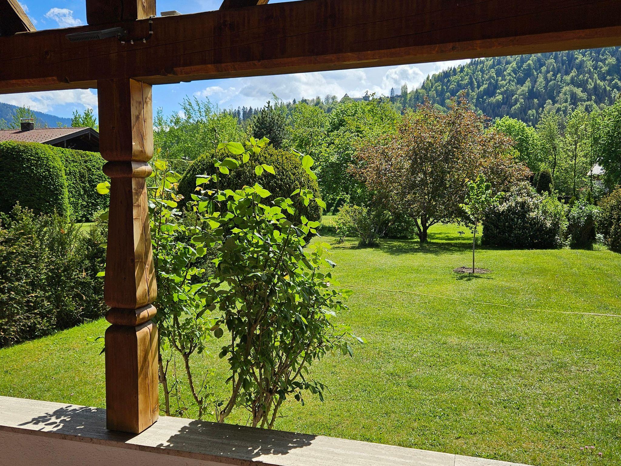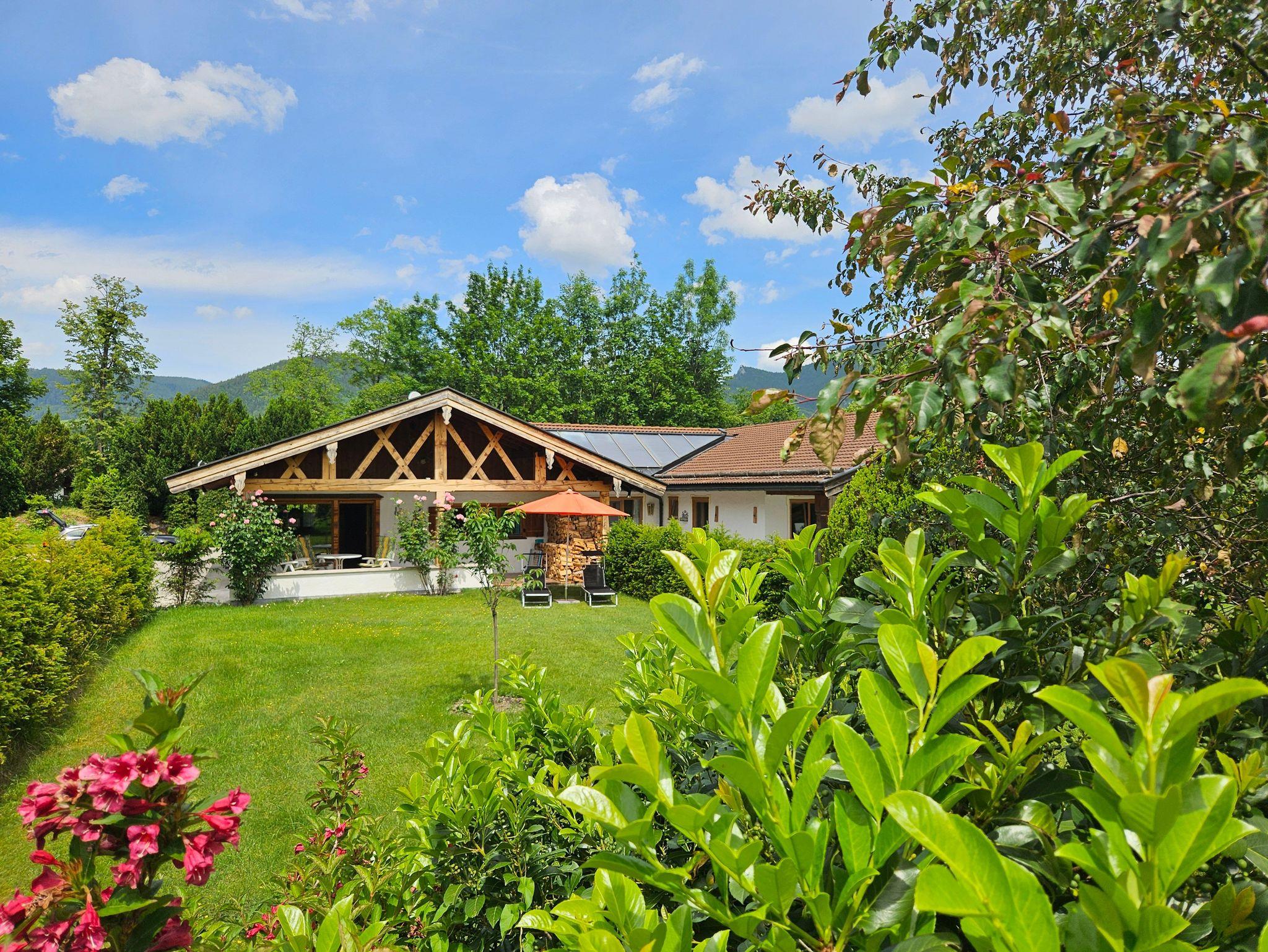 Der gemütliche bayrische Landhausbungalow befindet sich inmitten von Blumen, Bäumen und Sträuchern innerhalb eines wunderschönen großen Gartenareals. Er liegt direkt an der quellfrischen Weissach, ca. 10 Gehminuten vom Tegernsee entfernt und bietet einen herrlichen freien Blick auf die umliegenden Berge des Tegernseer Tals.