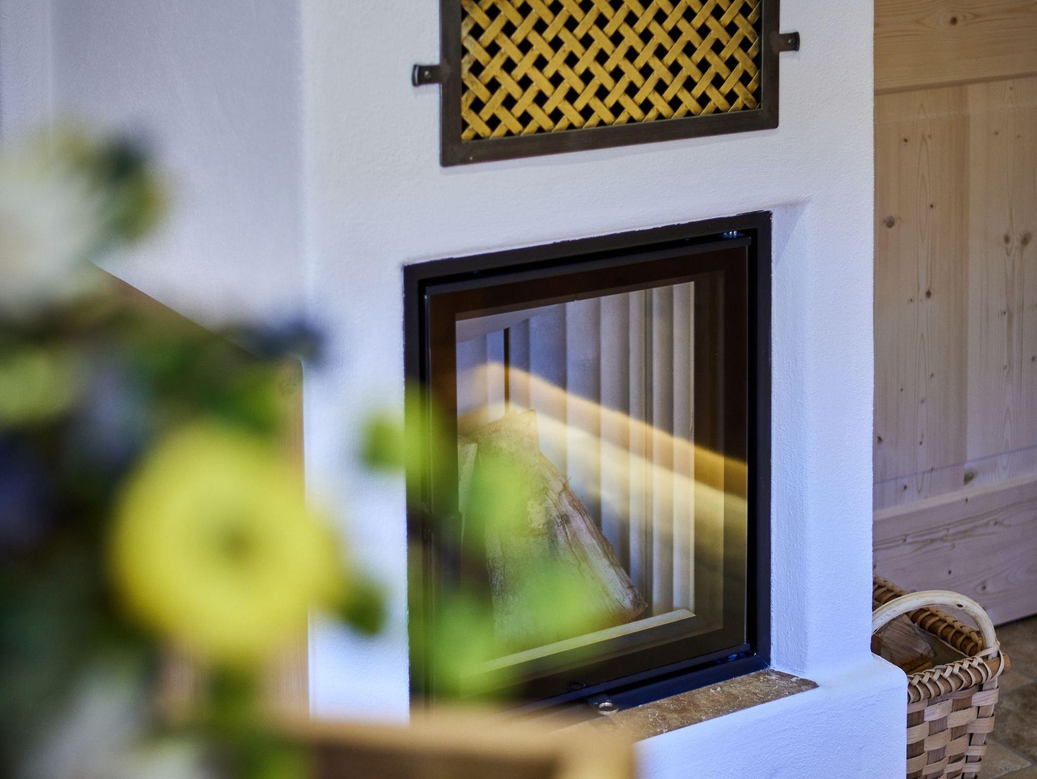 Der gemauerte Holzofen in der vollausgestatteten Wohnküche sorgt für eine angenehme Atmosphäre und vermittelt den Eindruck einer Bauernstube.