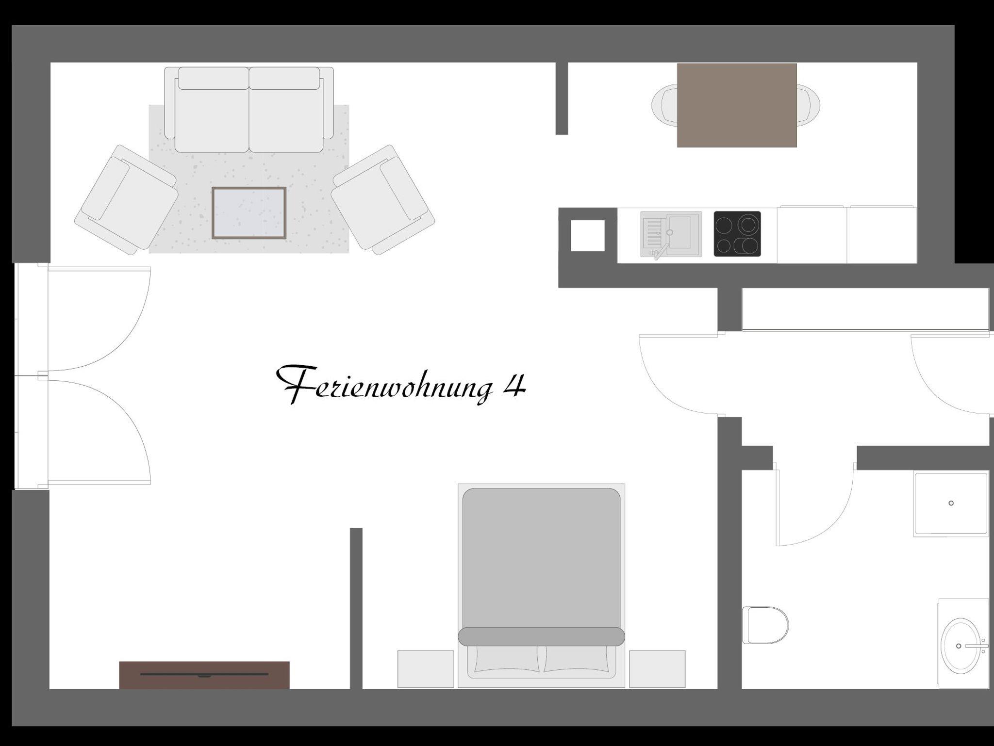 Ferienwohnung mit geräumigem Wohn-/Schlafzimmer, Küche, Dusche / WC, Kabel - TV, 2. Stock - Ostseite (45qm)