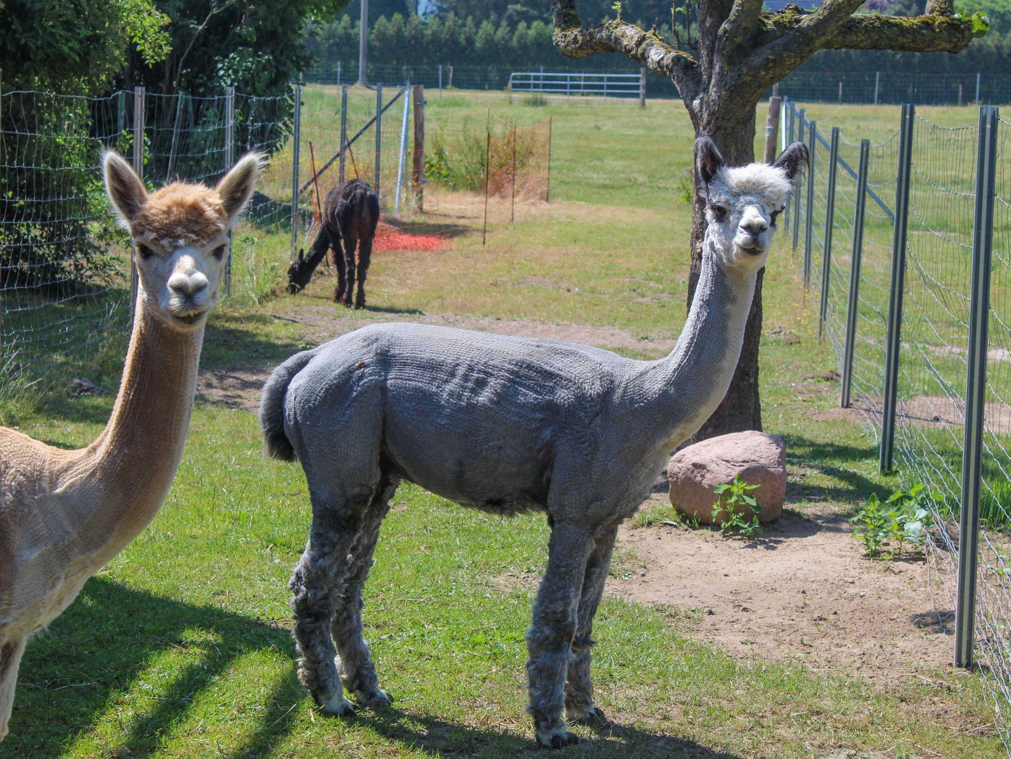 In dem Bauernhaus auf dem Alpaka-Hof in Rubkow, zwischen Anklam und Wolgast, erwartet Sie eine fast ebenerdige 85 m² große Wohnung mit 3 Zimmern, Küche und Bad. Diese wurde neu ausgebaut, gemütlich eingerichtet und befindet sich auf einer Etage. Durch einen separaten Eingang gelangen Sie über einen kleinen Flur in eine moderne Küche mit großem Esstisch für bis zu 8 Personen. Von da aus empfängt Sie ein gemütlicher Wohnbereich mit bequemen Polstermöbeln (mögliche Aufbettung für 2 Personen) und Sat-TV. Es stehen Ihnen zwei separate Schlafzimmer mit je einem Doppel- und einem weiteren Einzelbett zur Verfügung. Ein geräumiges modernes Bad mit bodenebener großer Dusche, Waschtisch und WC rundet den Komfort ab. Von der voll ausgestatteten Küche geht es in Ihren eigenen Garten mit Ausblick auf die Alpakas. Im Garten befindet sich eine sonnengeschützte Sitzgruppe und ein Holzkohlegrill. Auf der Alpaka-Farm werden Alpaka-Spaziergänge, Alpaka Foto-Shootings, Hofführungen oder Alpaka-Picknicks angeboten. Bei einer Buchung ab 7 Übernachtungen ist ein Alpaka-Picknick (nicht im Winter) oder eine Hofführung für Sie kostenlos.