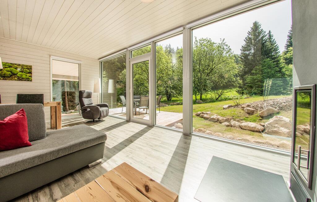 Dette moderne og komfortable feriehus har en absolut idyllisk beliggenhed. Glæd jer til et lille stykke paradis i ferieparken midt i Thüringer Wald. Efter en skøn gåtur i spektakulær natur kan I varme op i saunaen og nyde en vidunderlig udsigt over det maleriske omgivende landskab, mens I spiser sammen eller slapper af i sofaen, mens flammerne knitrer stille og roligt i pejsen.