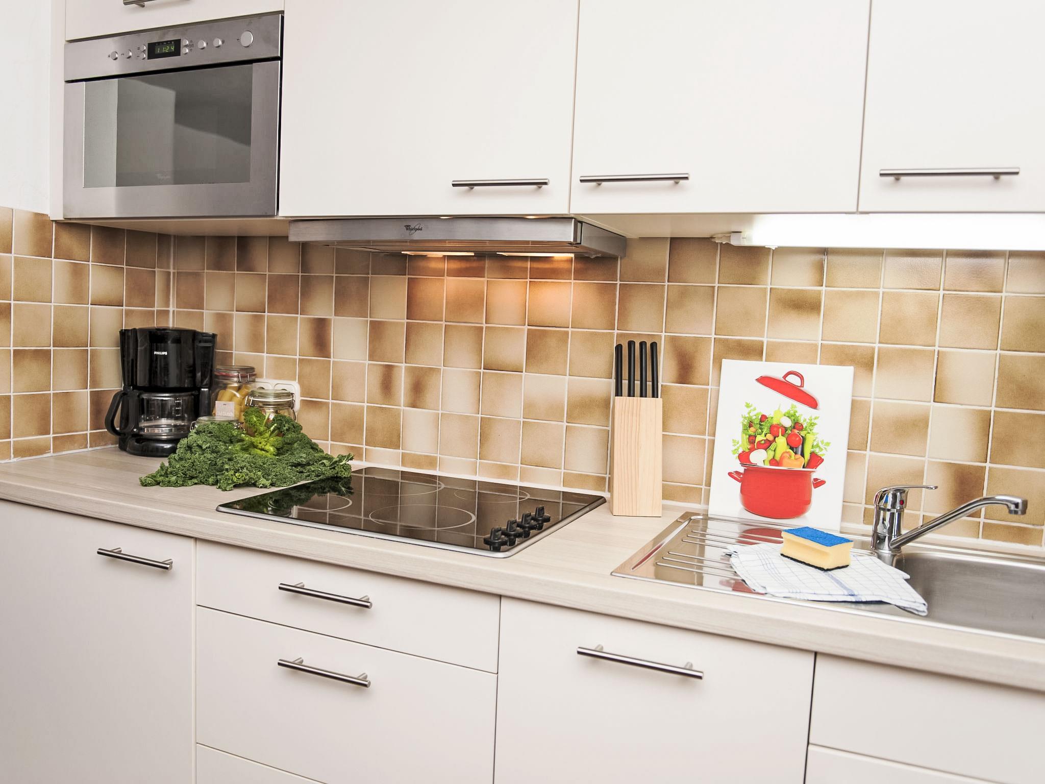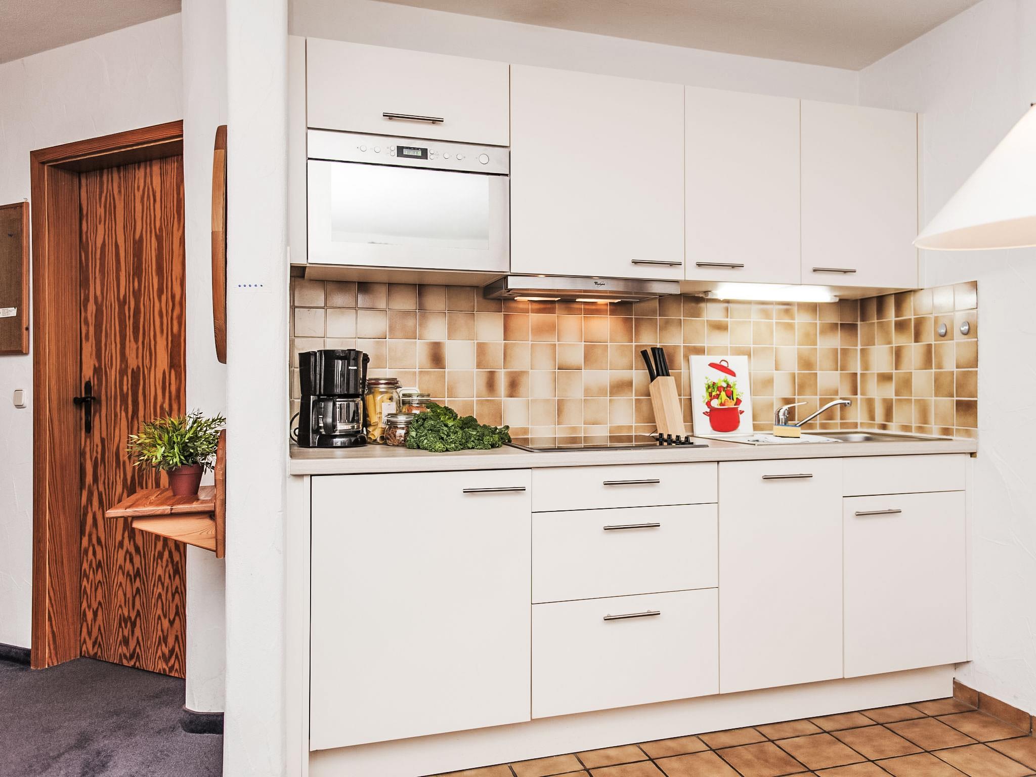 "Wohnung 4 (Am Sonneneck)", 2-room apartment 50 m2, on the ground floor. Beautiful and cosy furnishings: living/dining room with 1 double sofabed (160 cm, length 200 cm), cable TV (flat screen), radio. Exit to the terrace. 1 double bedroom. Exit to the terrace. Kitchenette (dishwasher, 4 ceramic glass hob hotplates, electric coffee machine, combination microwave). Shower/WC. Terrace furniture. Facilities: telephone (extra), children's high chair, baby cot, hair dryer. Internet (WiFi, free). Please note: non-smokers only. Smoke alarm.
