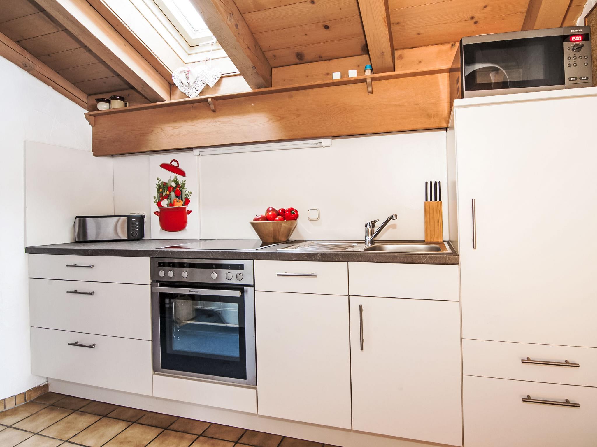 "Wohnung 8 (Am Sonneneck)", 3-room apartment 52 m2, on the top floor. With sloping ceilings, beautiful and cosy furnishings: living/dining room with 1 double sofabed and cable TV (flat screen), radio. Exit to the balcony. 1 double bedroom. Exit to the balcony. 1 small room with 1 bed (120 cm, length 200 cm). Kitchenette in the entrance (oven, dishwasher, 4 ceramic glass hob hotplates, kettle, microwave, electric coffee machine). Shower/WC, sep. WC. Balcony furniture. Facilities: children's high chair, baby cot, hair dryer. Internet (WiFi, free). Please note: non-smokers only. Smoke alarm.