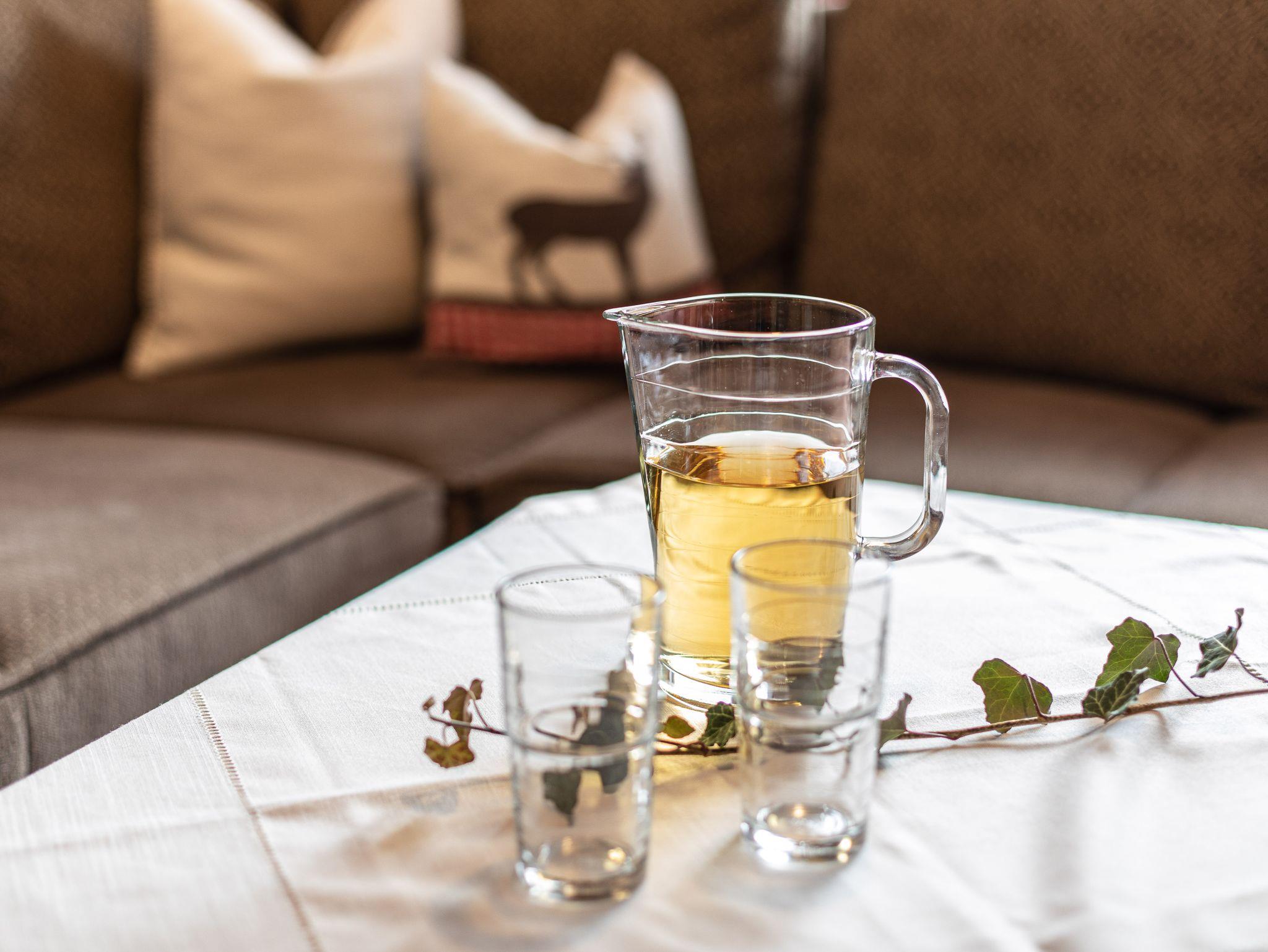 Es erwarten Sie gepflegte, gemütliche Ferienwohnungen bzw. Appartements in verschiedenen Größen, ausgestattet mit Dusche oder Bad/WC, Radio, Kabel-TV, Balkon mit Bergblick, Telefon und z. t. Kachelofen. Auf Wunsch Frühstücksbuffet mit Müsliecke. Ruhige zentrale Lage, 5 Gehminuten zum Ortszentrum. Parkplatz direkt am Haus, Tiefgaragenstellplatz auf Wunsch möglich. Gästehäuser inmitten einer großen Spiel- und Liegewiese. Loipen und Skilift ca. 300 m entfernt. Skiraum mit Schuhtrockner.