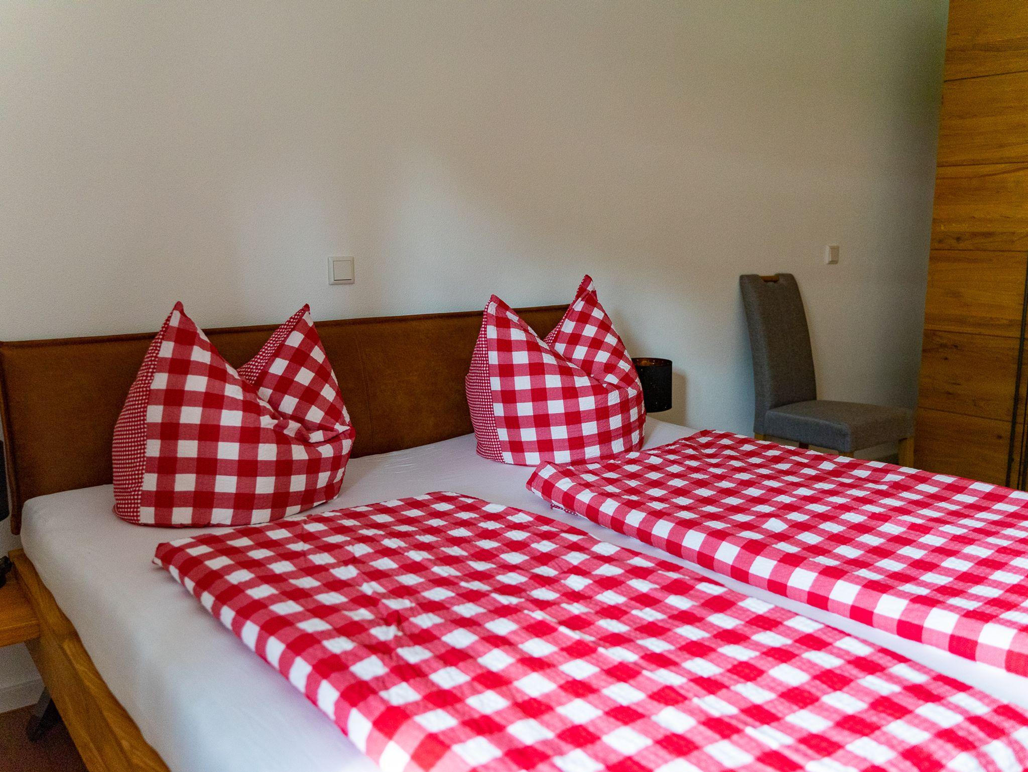 Unsere beiden ****Ferienwohnungen Kleeblatt (EG) und Herzblatt (OG) im modernen bayerischen Landhausstil bieten auf ca. 65qm jeglichen Komfort. Ausgestattet mit jeweils zwei Doppelschlafzimmern, einer gemütlichen Wohnküche inklusive ausziehbarer Couch, einem Badezimmer mit Dusche und WC sowie einem separaten WC bleiben keine Wünsche offen.
