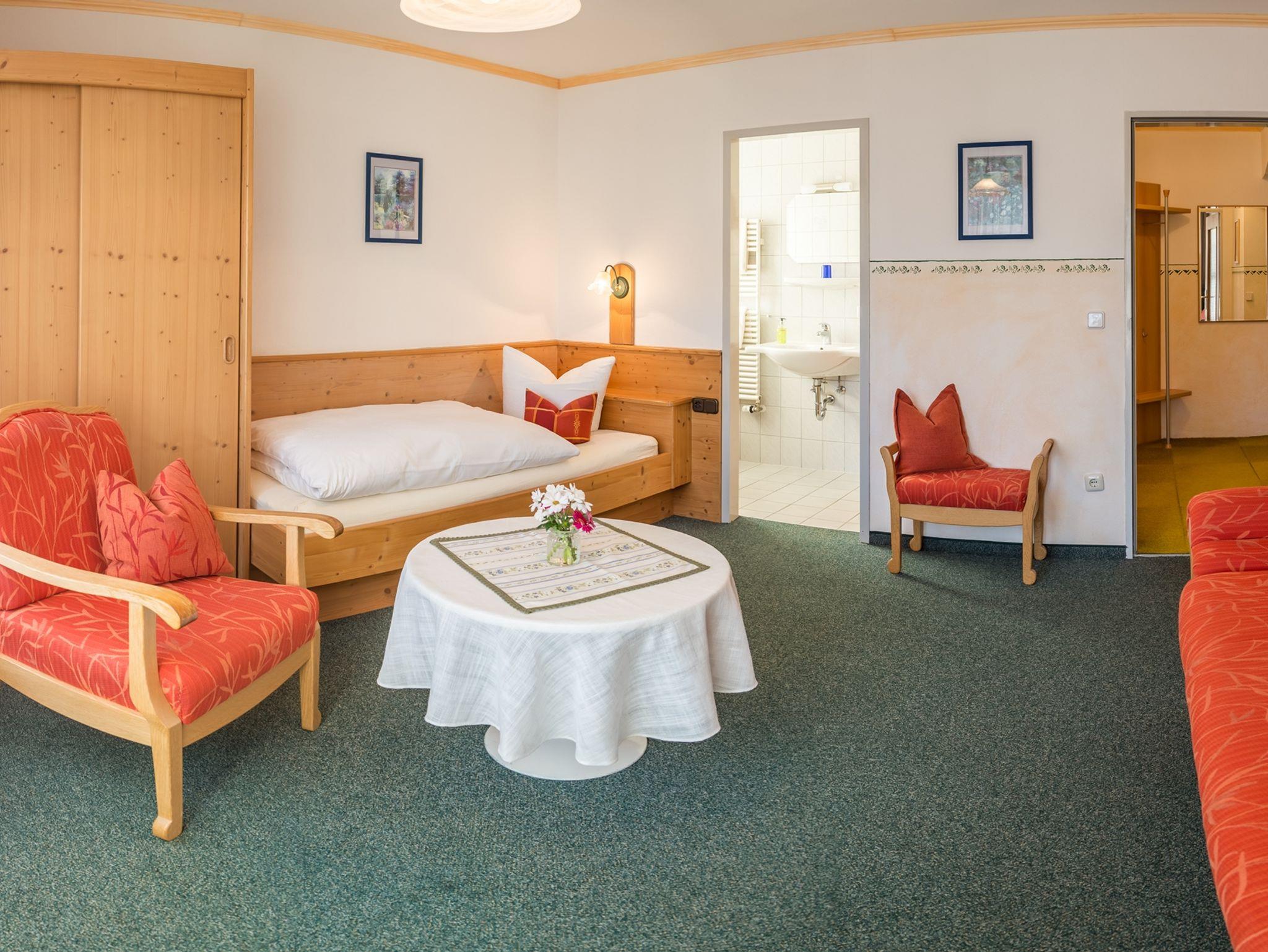 Es erwarten Sie gepflegte, gemütliche Ferienwohnungen bzw. Appartements in verschiedenen Größen, ausgestattet mit Dusche oder Bad/WC, Radio, Kabel-TV, Balkon mit Bergblick, Telefon und z. T. Kachelofen. Auf Wunsch Frühstücksbuffet mit Müsliecke. Ruhige zentrale Lage, 5 Gehminuten zum Ortszentrum. Parkplatz direkt am Haus, Tiefgaragenstellplatz auf Wunsch möglich. Gästehäuser inmitten einer großen Spiel- und Liegewiese. Loipen und Skilift ca. 300 m entfernt. Skiraum mit Schuhtrockner.