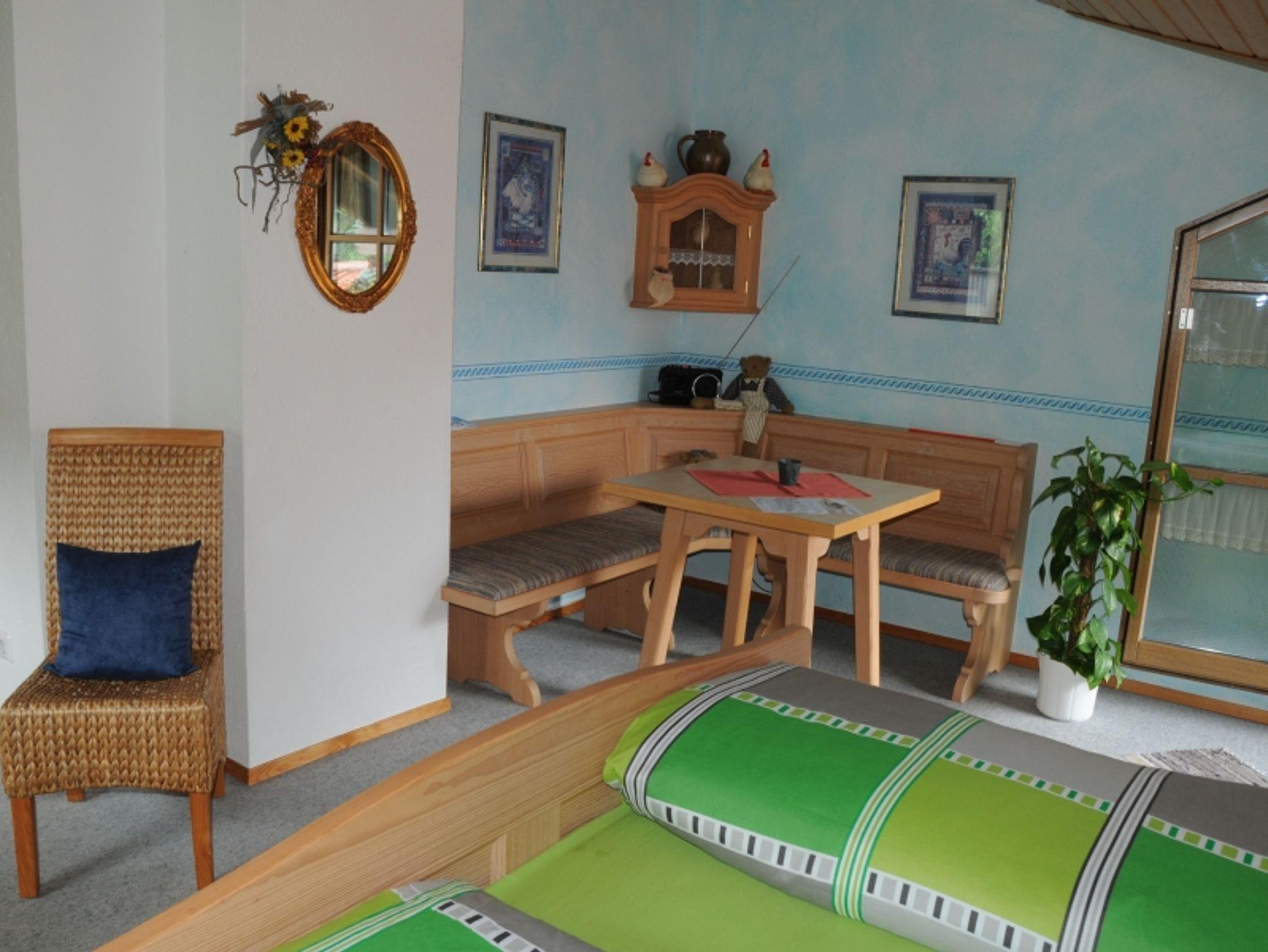Gemütliche Ferienwohnung mit Wohn-Schlafraum, TV, Radio, Balkon und Liegewiese auf der Südseite. 5 Minuten bis zur Ortsmitte. Zusätzlicher Wohnbereich für 2 weitere Personen vorhanden.