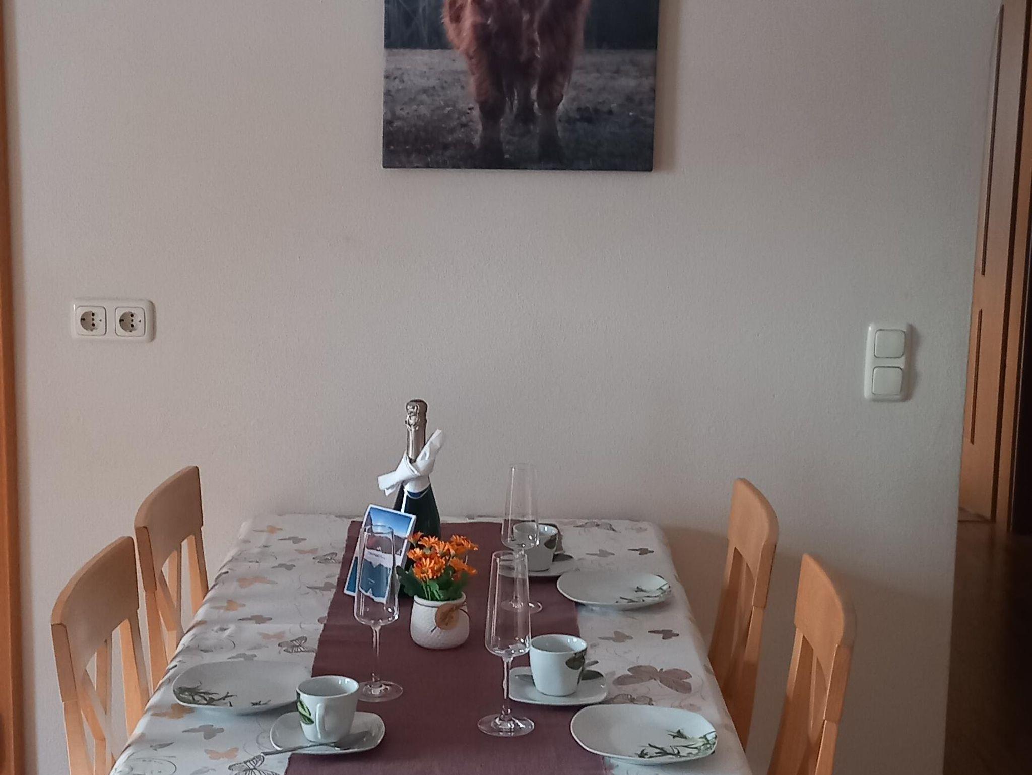 Unsere modern eingerichtete Ferienwohnung verfügt über insgesamt 65qm,für 2-4 Personen ausgelegt, mit 2 separaten Schlafzimmern. Die Küchenzeile ist mit Kühlschrank, E-Herd, Heißluftfritteuse, Kaffeemaschine, Wasserkocher, Toaster und allen benötigten Kochutensilien ausgestattet. Esstisch bei Bedarf mit Kinderhochstuhl. Im Wohnzimmer befindet sich eine Rundcouch, Sat-TV, Radio, CD und DVD-Player. Das Bad ist mit Dusche/WC, Fön, Handtücher und Toilettenartikel. Ein geräumiger Südbalkon mit Blick auf die umliegenden Berge lädt zum Entspannen ein. Im Sommer gibt es die Möglichkeit zu Grillen. Es gibt einen Parkplatz am Haus und einen Abstellplatz für die Skier. 4 Minuten zur Loipe. Zug und Busverbindungen in unmittelbarer Nähe. Für unsere Gäste bieten wir Hotsplots-WLAN an.