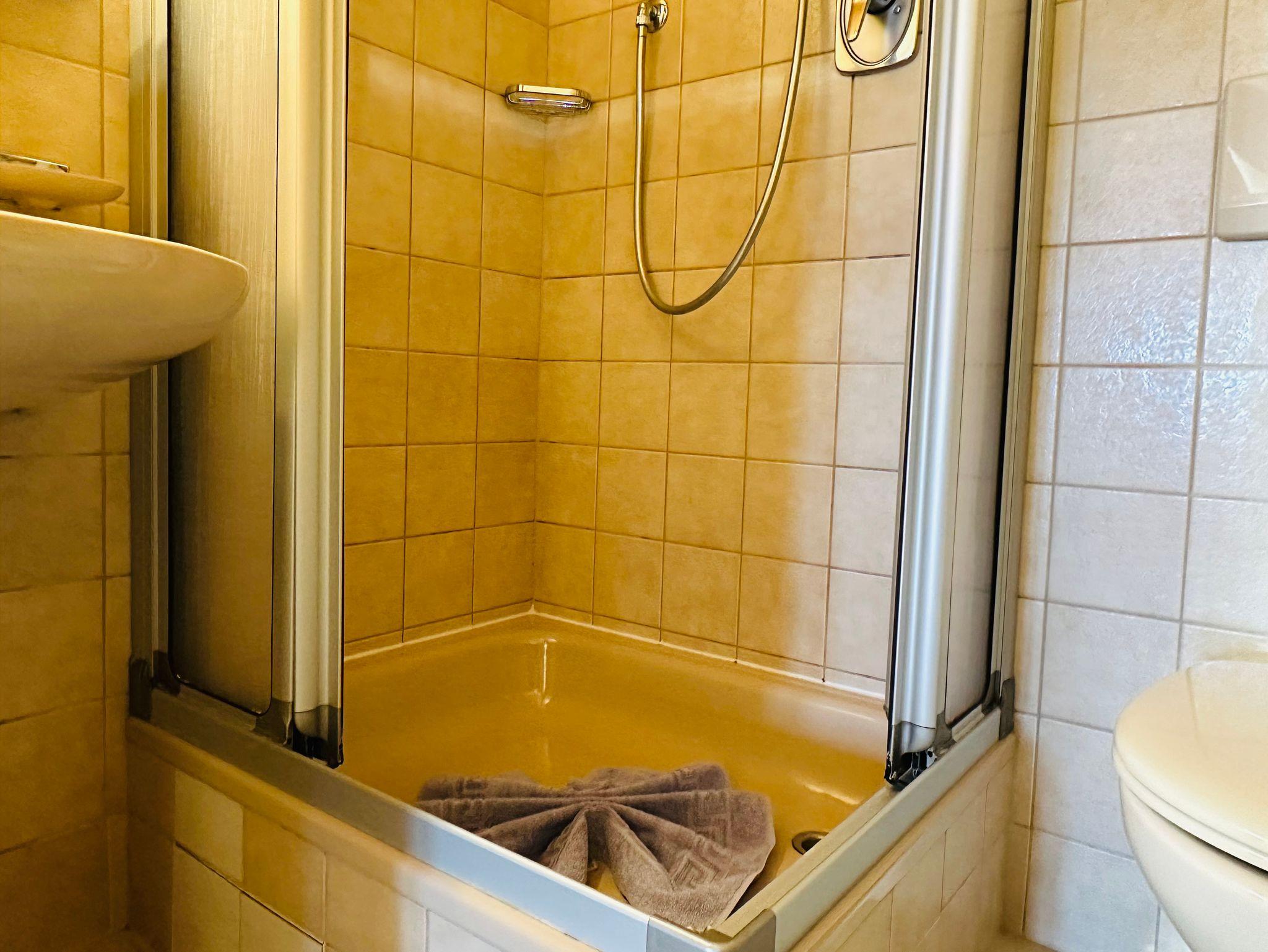Das Badezimmer mit Dusche, WC und Waschbecken rundet das Angebot ab und sorgt für zusätzlichen Komfort.