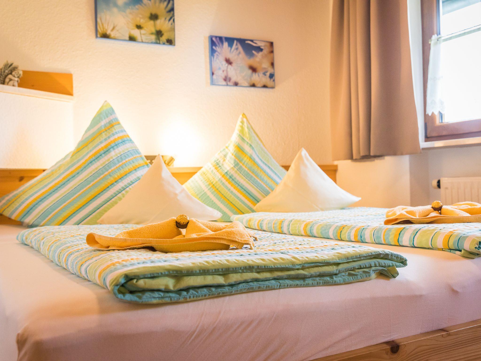 ***** Ferienhaus 2-6 Personen | 3 Schlafzimmer | 2 Bäder | Garage Gemütlich, familienfreundlich und einfach schön wohnt es sich in unserem großzügigen Ferienhaus mit 120 m² Wohnfläche. Freistehend und mit direktem Bergblick befindet es sich in ruhiger, sonniger Waldrandlage. In unmittelbarer Nähe befinden sich eine Kneipp-Anlage, der Golfplatz, Wander- und Radwege (im Winter Langlaufloipe) und vieles mehr.Sie wohnen in... - drei getrennten Schlafzimmern - zwei modernen Bädern (Dusche, Badewanne, WC, Bidet, Fön) - einem 30 m² großen, gemütlichen Wohnzimmer mit Kachelofen, inklusive Kaminholz, LCD-TV, Safe, Hifi- Anlage, DVD-Player und W-LAN - einer modernen, großen, komfortable und gut ausgestatteten Küche (Spülmaschine, Backofen, Mikrowelle etc.) und - einem separaten Esszimmer - unserem großen umlaufenden Süd-Südost Balkon/Terrasse, der zum Grillen oder einem Sonnenbad einlädt. In unmittelbarer Nähe: Wander- und Radwege, Skiwanderloipe direkt vor der Tür, Kneippanlage, Golfplatz, Gaststätten, Einkaufsmöglichkeiten.