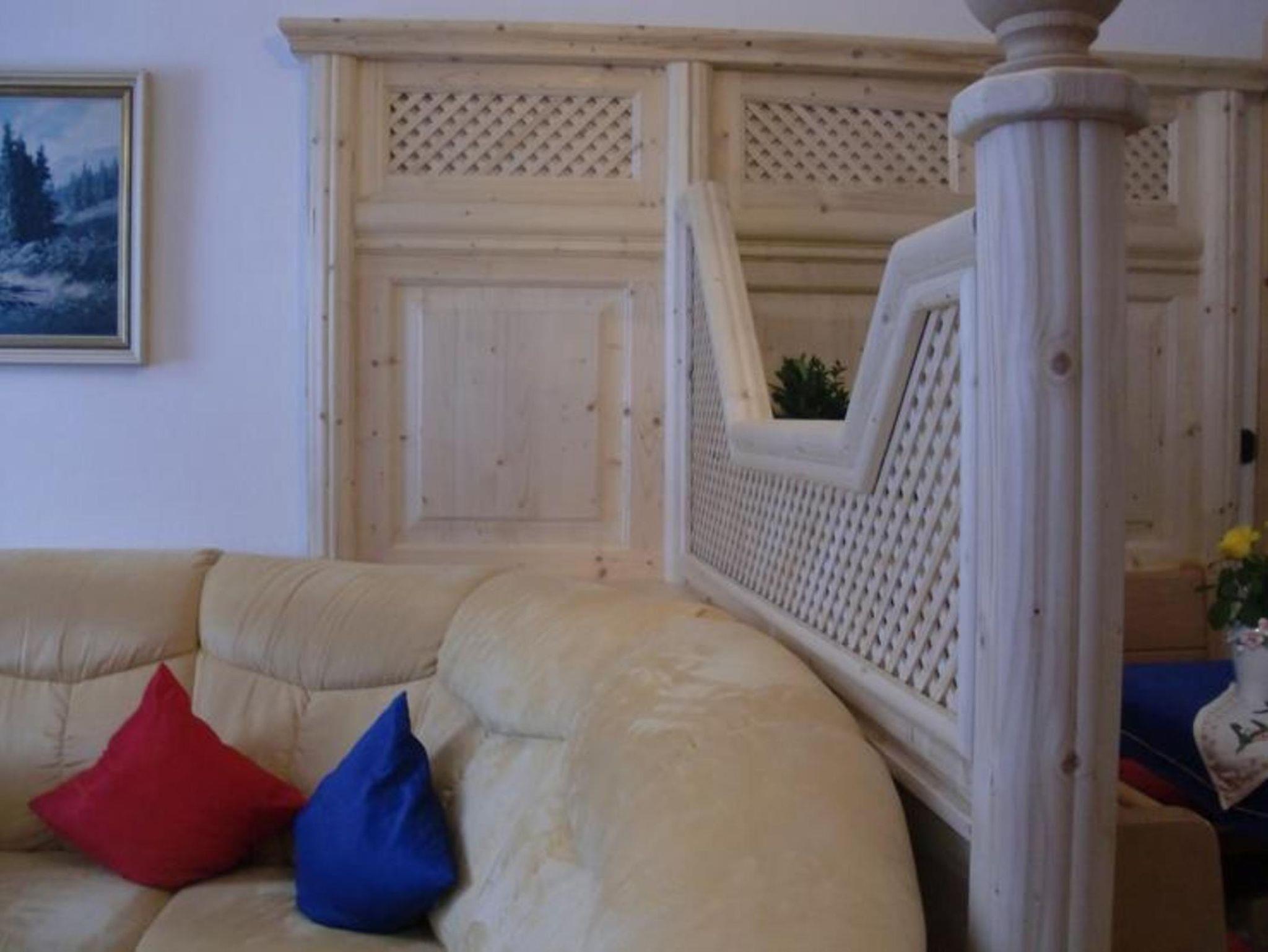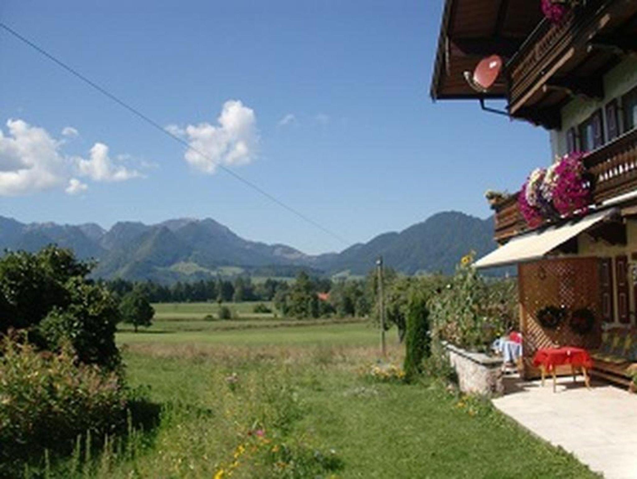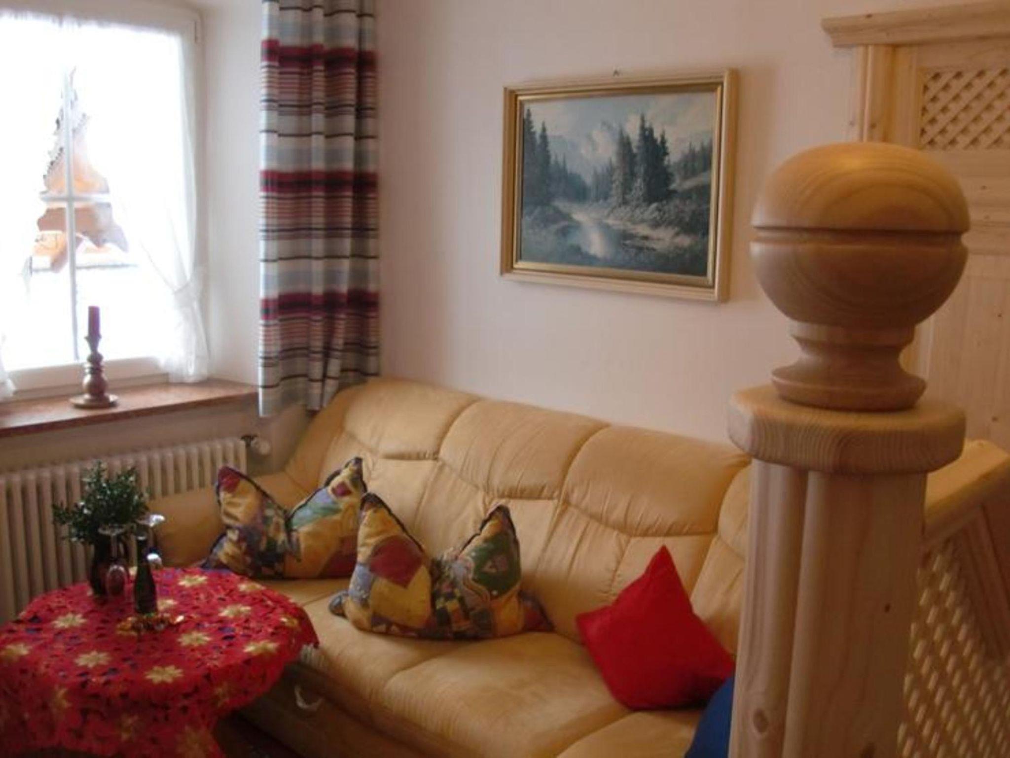 Die helle 2013 neu renovierte, komfortable im Landhausstil eingerichtete Ferienwohnung im ersten Stock, liegt in ruhiger erholsamer von Wiesen und Bergen umgebener Lage. Ein großer Teil der Wohnung wurde mit naturbelassenem Holz ausgekleidet wodurch sie viel Gemütlichkeit und Behaglichkeit ausstrahlt. Die Ferienwohnung besitzt zwei separate Schlafzimmer mit jeweils zwei Doppelbetten, ein Bad und noch ein separates Gäste WC. Der zu dieser Wohnung gehörige ca.15 m lange Westbalkon, ist bequem über die große Wohnküche zu erreichen und bietet im Sommer lange traumhafte Sonnenuntergänge.
