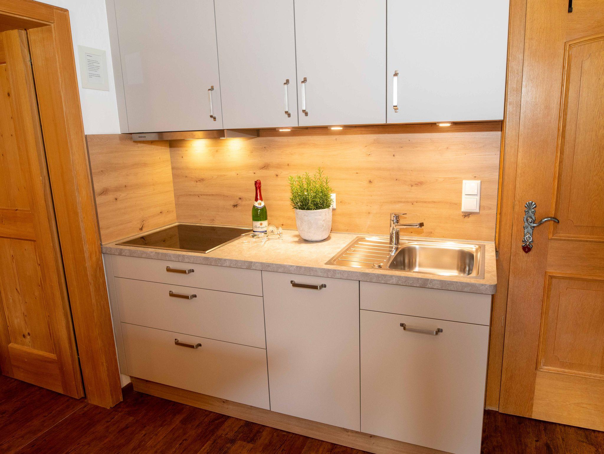 Gemütlich und liebevoll vom Schreiner eingerichtete Ferienwohnung im Landhausstil mit einem Schlafzimmer. Weitere Personen auf Anfrage möglich. Wohnraum mit Küchenzeile inkl. Backofen und Geschirrspüler, Bad mit Dusche und WC.