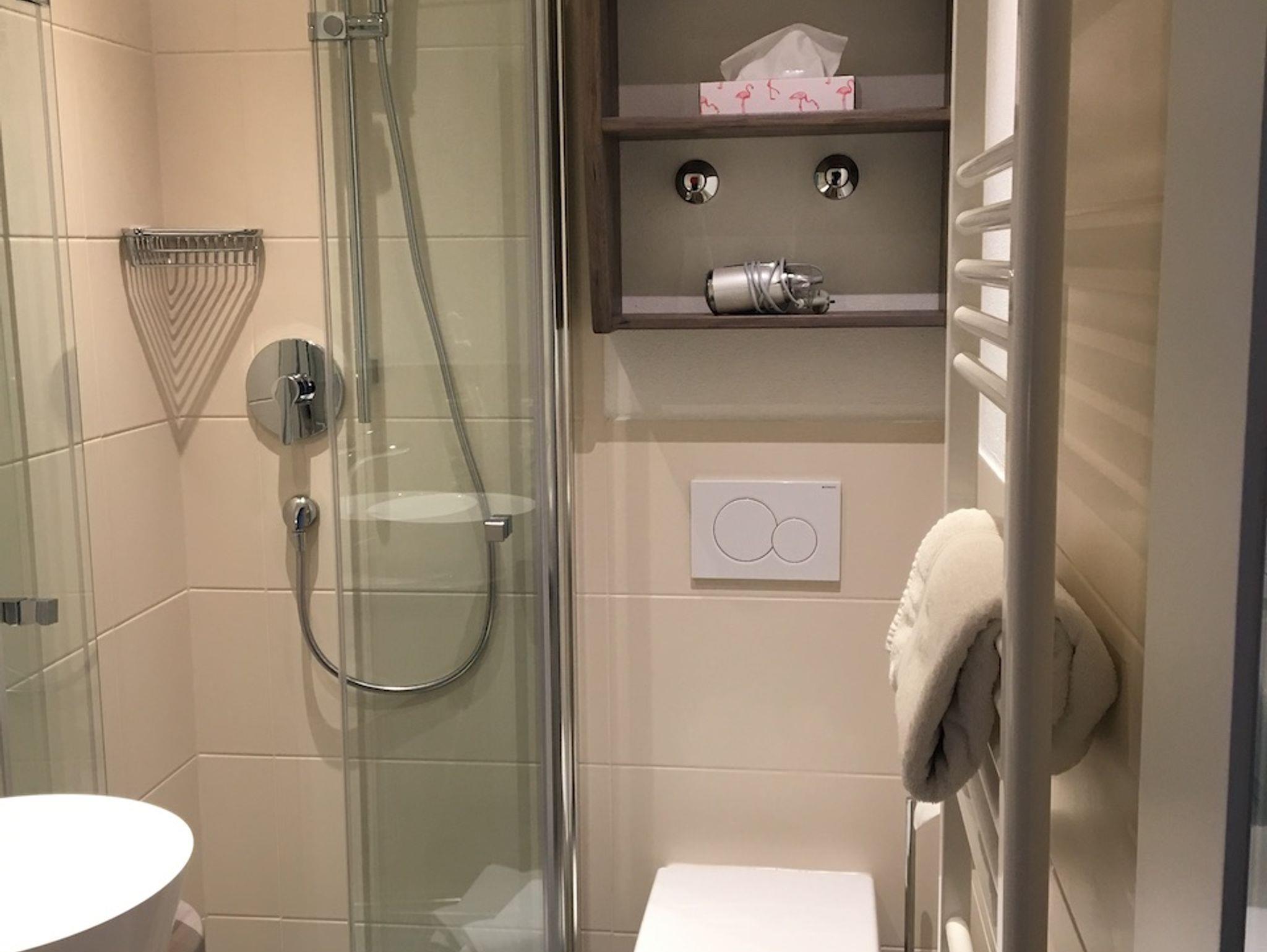Mit Schreibtisch | Flat-TV | Sessel. Charmantes, kleines Bad mit Regendusche | WC | Föhn | Kosmetikspiegel | Kosmetikartikel. Geschützter, kleiner Balkon | mit Sitzgruppe | traumhafter Blick auf Wiesen, Wälder und die umliegenden Berge.