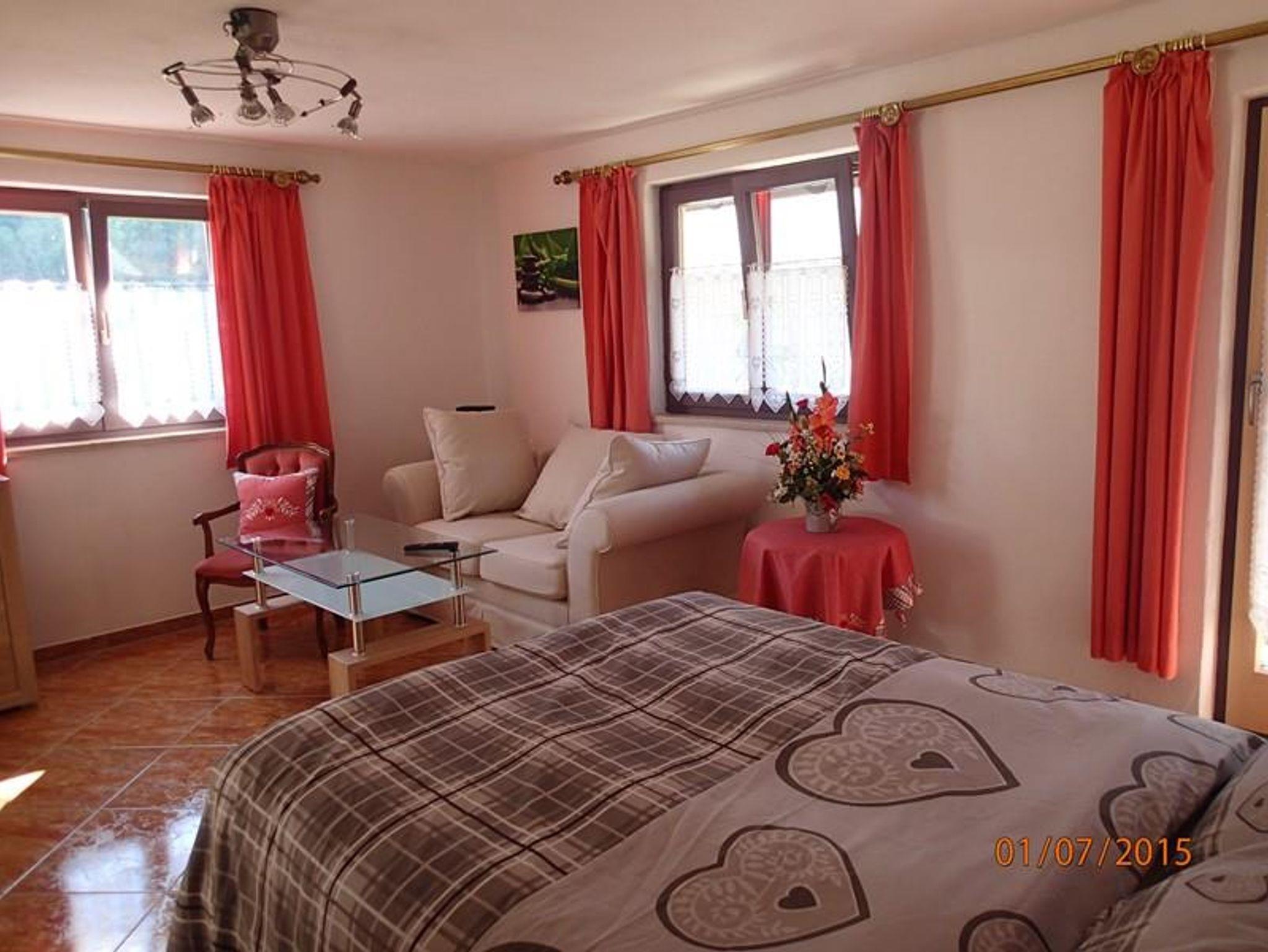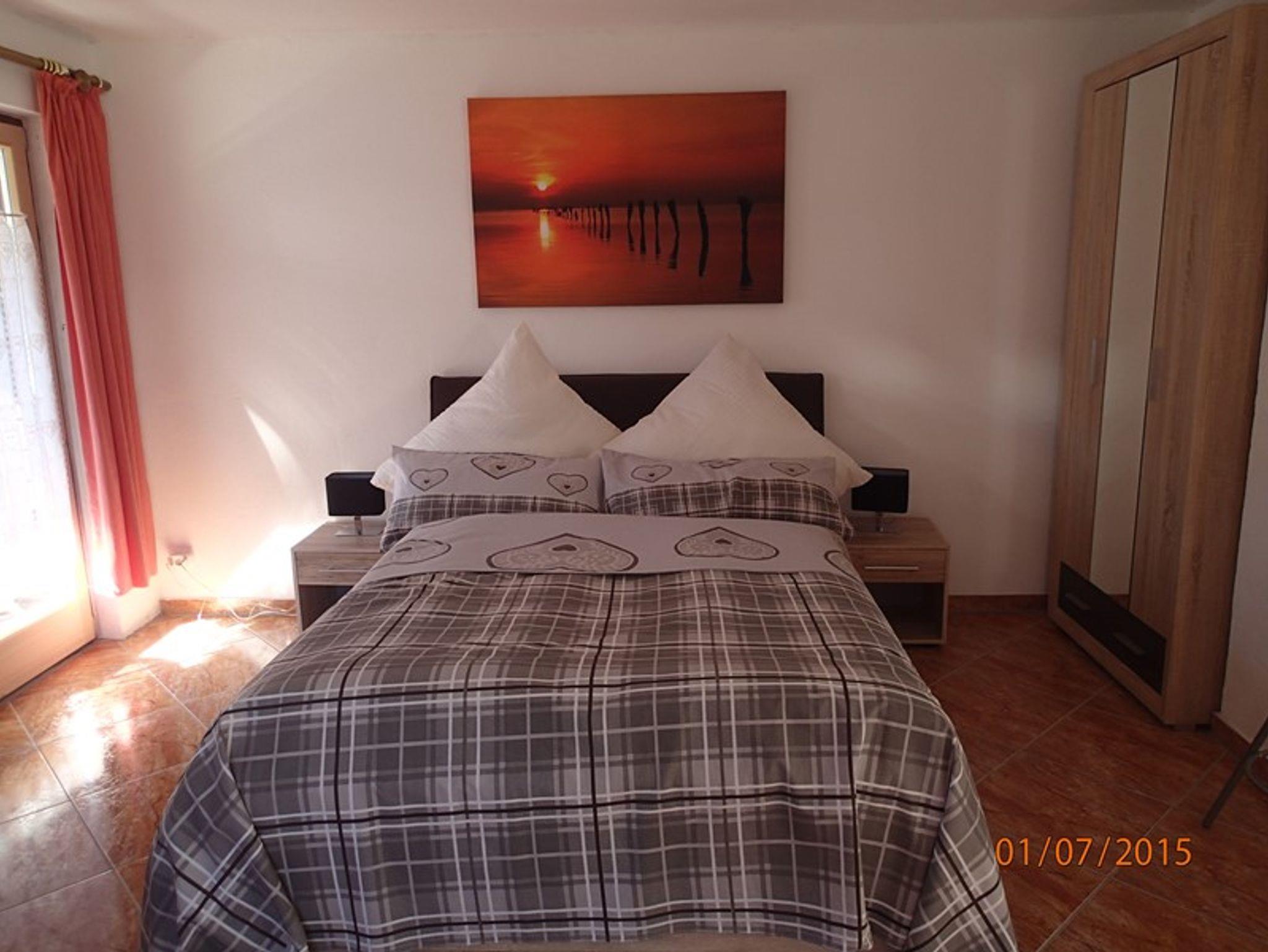 Haus Neuhäusl inkl. Chiemgaukarte, Appartment Zinnkopf 40 qm, Wohnschlafraum mit Boxspringbett, Balkon, Küche