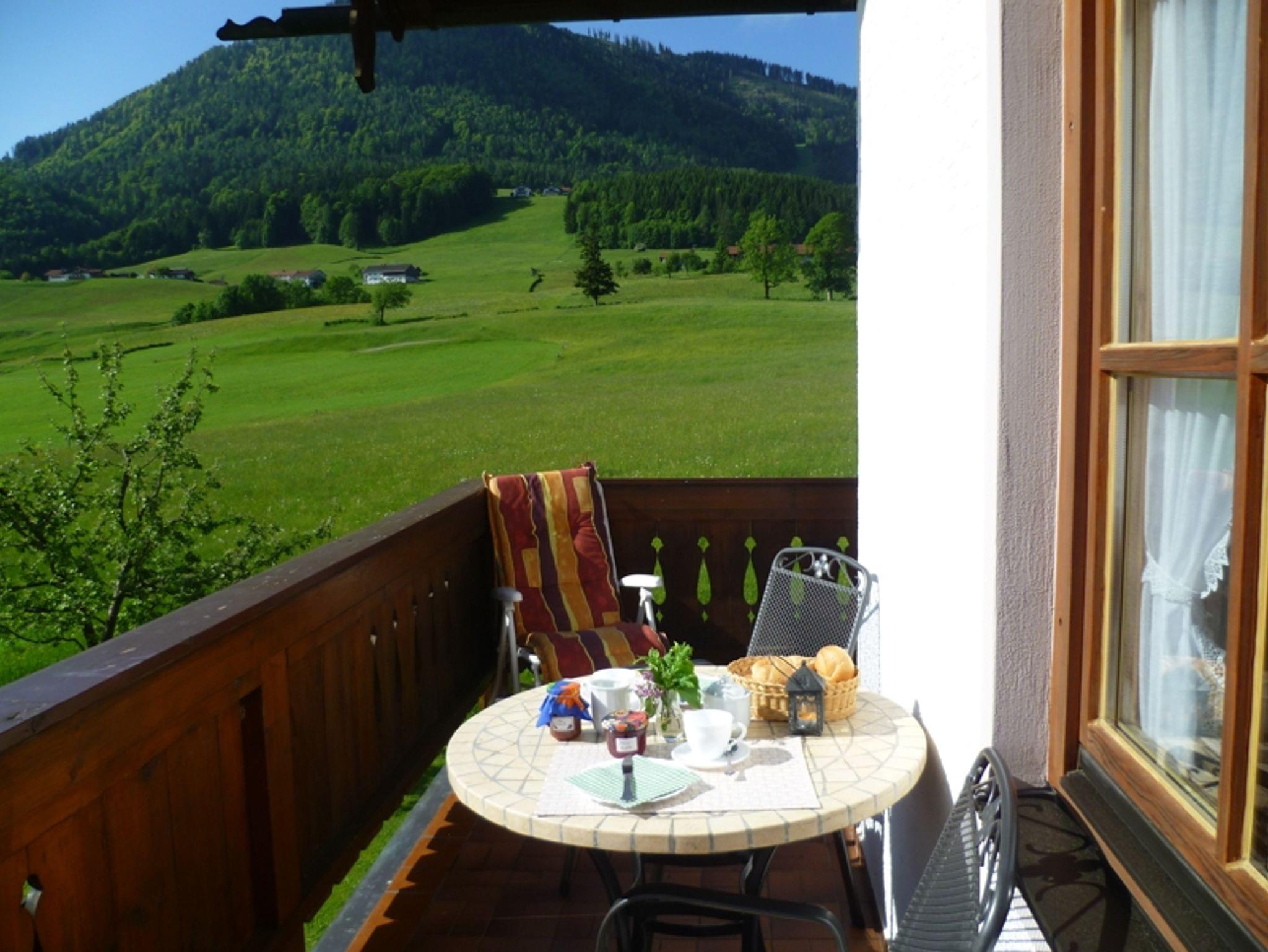 Die gemütliche Ferienwohnung für 2-4 Personen ist liebevoll im bayerischen Landhausstil eingerichtet und verfügt über ein Doppelschlafzimmer, Wohnzimmer mit Doppel-Schlafcouch, Essecke, Kabel-TV, Radio, komplett eingerichtete Kochecke und Dusche mit WC, W-Lan und großem Süd-Ost-Balkon mit Panoramablick. Die Ferienwohnung hat eine Größe von 43 m²Familien mit Kindern sind bei uns herzlich willkommen ? Kinderbett und Kinderhochstuhl stellen wir gerne kostenlos zur Verfügung. Bettwäsche und Handtücher stellen wir kostenlos zur Verfügung ? Brötchenservice ? Es ist 1 Hund erlaubt