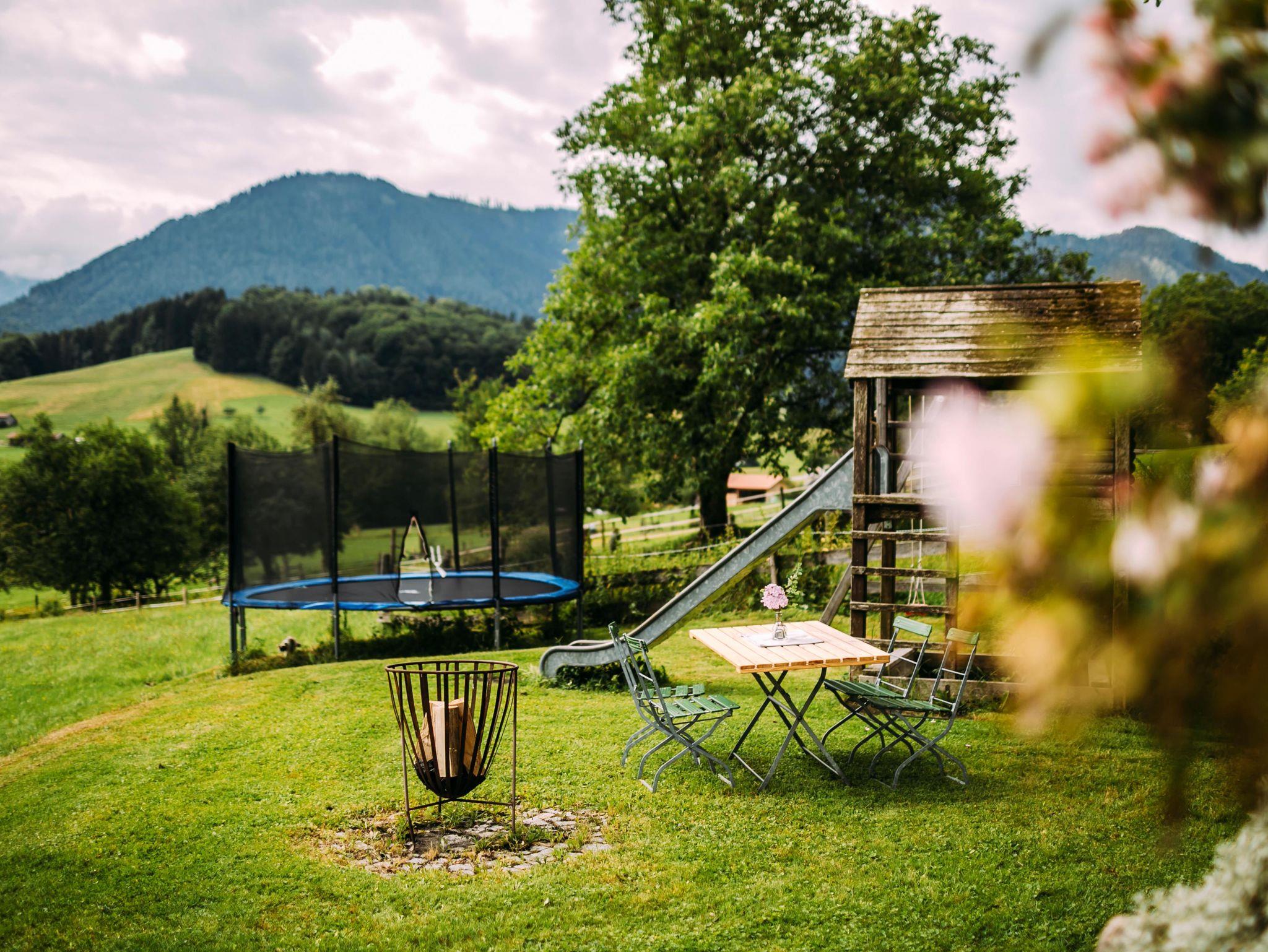 Unser Hof liegt an einem Südhang mit herrlichem Bergblick, umgeben von saftigen Wiesen.Die Dorfmitte ist zu Fuß bequem in ca. 10 Minuten zu erreichen. Das grandiose Alpenpanorama kann jeder von seinem eigenen Balkon aus genießen. Unsere vier neu renovierten Ferienwohnungen haben eine gemütliche Atmosphäre. Sie sind ausgestattet mit schönen Holzdielenboden, modernen Bädern und Vollholzküchen. Für eine romantische Stimmung sorgen die mit Sichtfenstern ausgestatteten Kachelöfen. Natürlich ist Zentralheizung vorhanden. Die Balkone bieten einen fantastischen Blick und laden zum Verweilen ein. Im Winter lädtder hauseigene Lift , nur 5 Gehminuten entfernt, zum Ski- und Schlittenfahren ein.