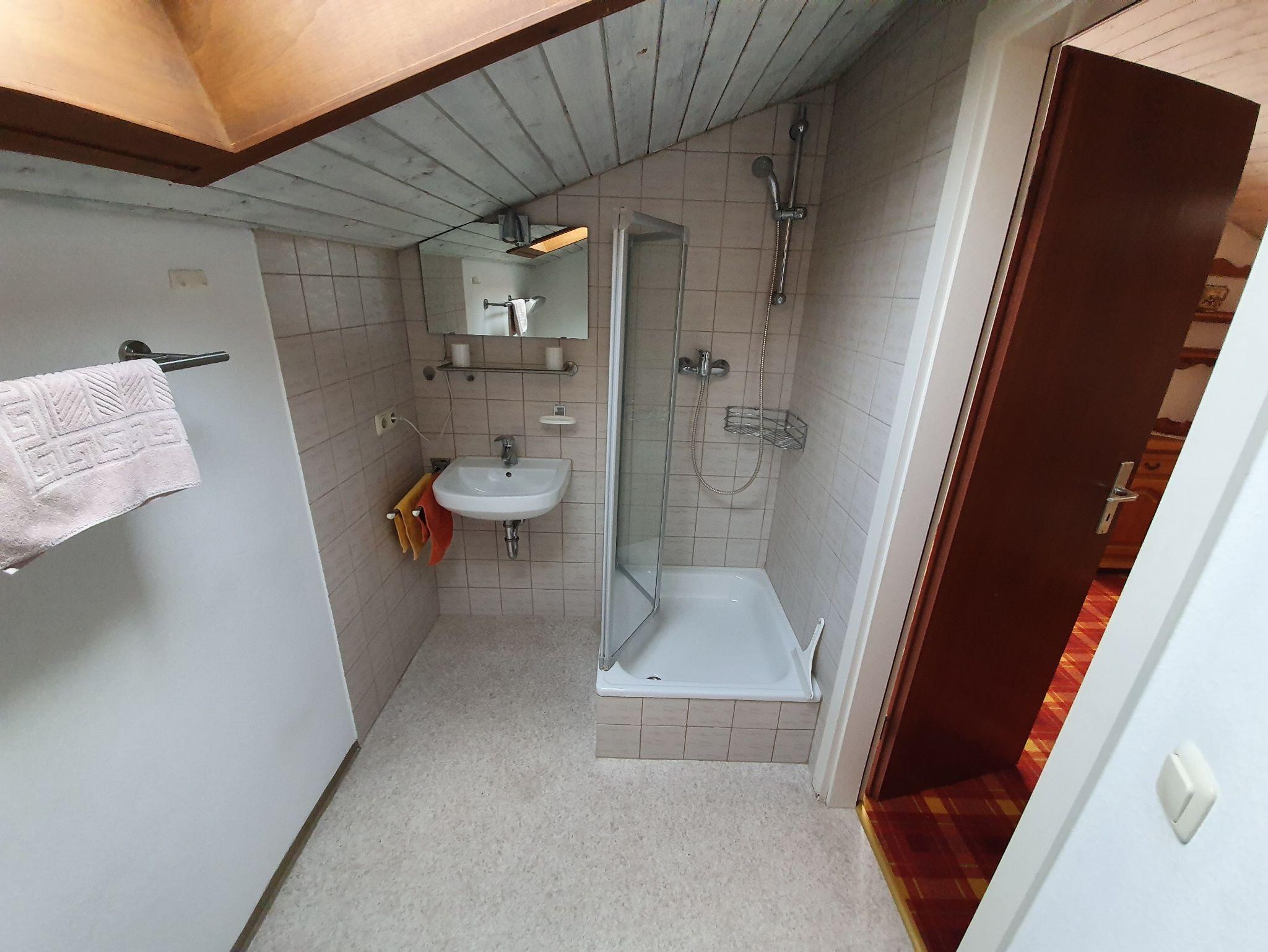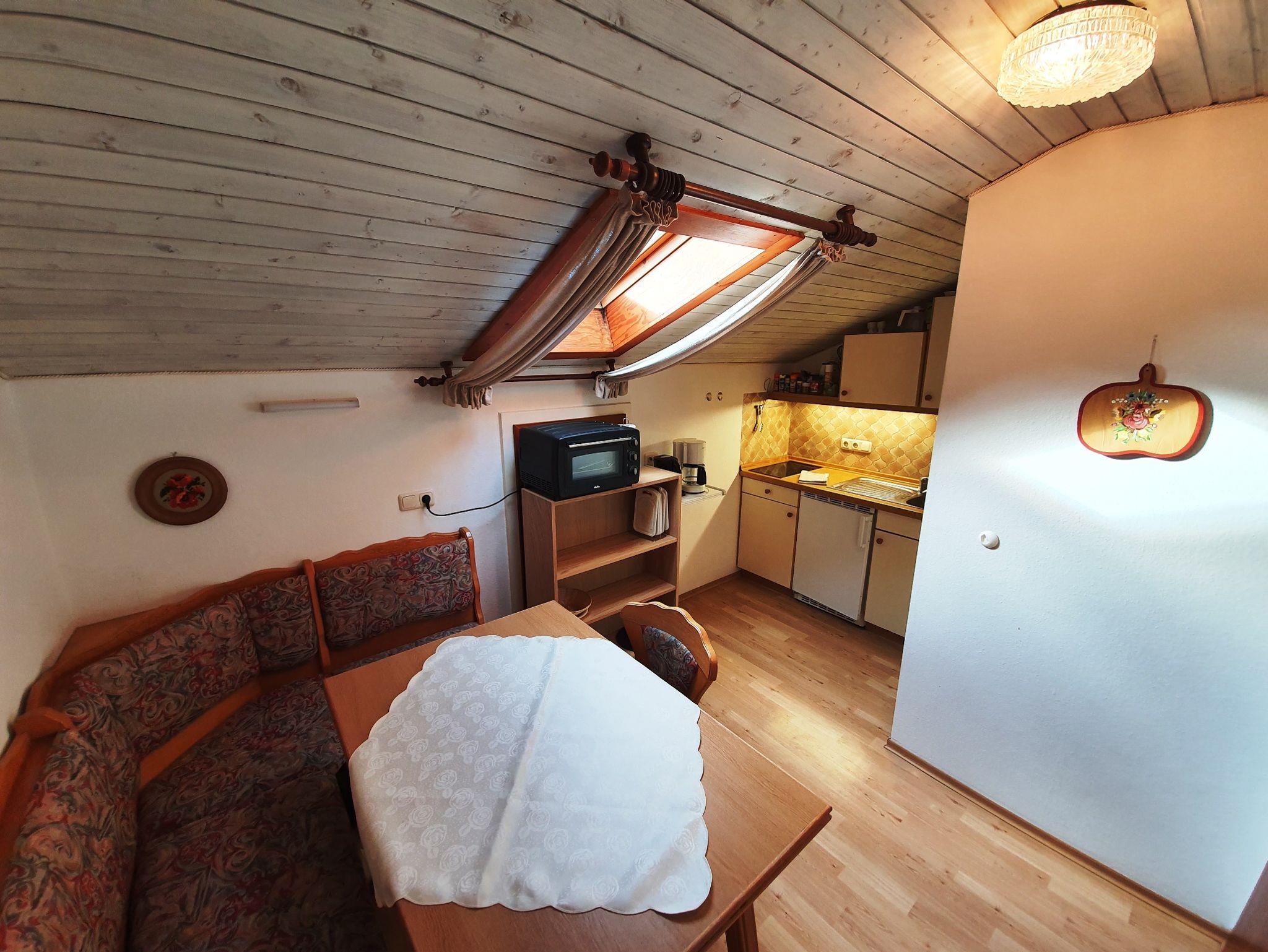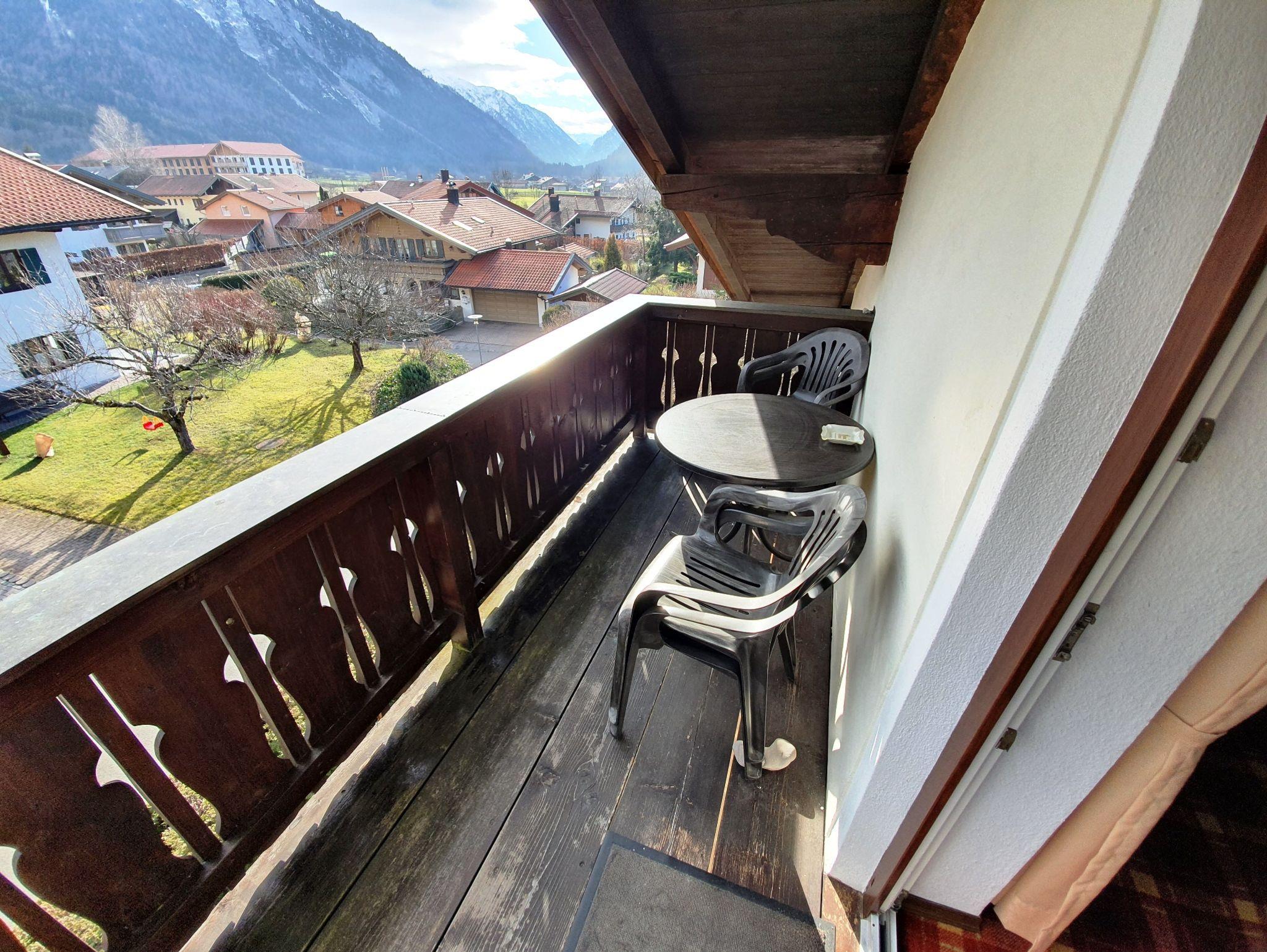 FeWo Rauschberg im 2. Stock, ca. 48 qm, kombinierter Wohn-/Schlafraum mit ausziehbarer Couch, Küche mit Essecke, Schlafzimmer, Duschbad, getrenntes WC, Balkon mit freiem Bergblick, Kabel-TV, WLAN, Hunde erlaubt.