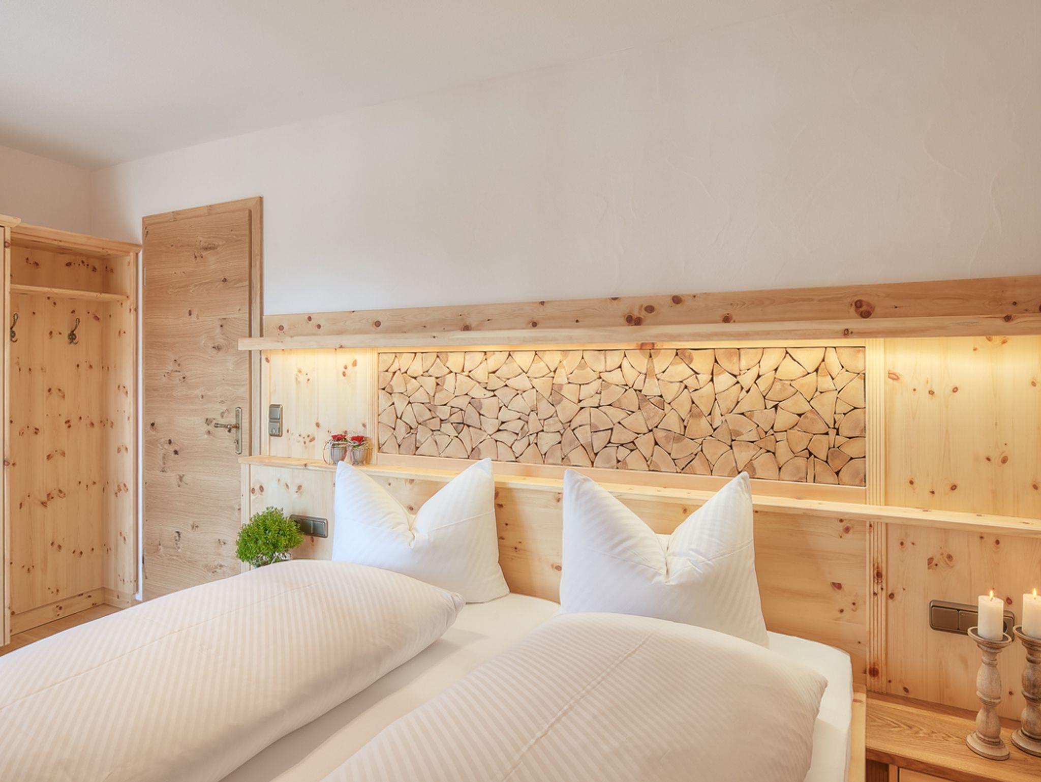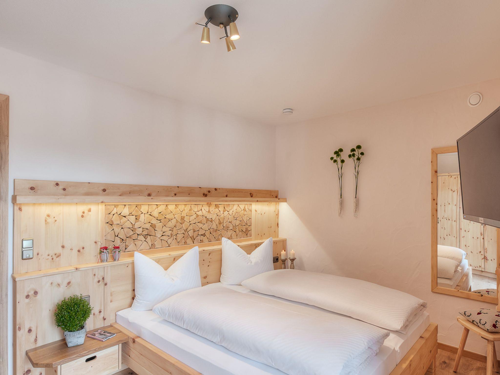 In der Ferienwohnung Jasmin (67m2) fällt es ganz leicht, den Alltag hinter sich zu lassen und im Urlaub anzukommen. Die Erdgeschosswohnung ist in alpenländisch-elegantem Stil gehalten und hochwertig eingerichtet. Wohnraum: Der großzügige, offene Wohnraum ist mit einer vollausgestalteten Küche in Altholzqualität, einem behaglichen Kachelofen zum selbst Anheizen, einer rustikalen Essgruppe und einem großen Wohnbereich mit gemütlichen, geschreinerten Polstermöbeln, Smart-TV und WLAN ausgestattet. Der Wohnbereich führt ebenerdig auf die Süd-Terrasse mit Grill hinaus. Von hier genießen Sie einen malerischen Blick auf das Alpenpanorama. Schlafzimmer:Das Schlafzimmer mit Doppelbett und TV ist zur Gänze aus Zirbenholz gearbeitet und sorgt, dankt der ätherischen Öle der Zirbe, für einen erholsamen Schlaf. Vor dem Schlafzimmer liegt die zweite Terrasse der Wohnung; östlich ausgerichtet lädt sie dazu ein, mit der Sonne in den Tag zu starten. Bad:Das Badezimmer mit alpinem Charme verfügt über eine Badewanne, eine Dusche, einen Waschtisch und ein WC. Lage & Sonstiges:Die Wohnung befindet sich in bester Lage: ruhig, aber dennoch zentral.Ihr Auto können Sie in der hauseigenen Tiefgarage mit angrenzendem abschließbaren Abstellraum parken.