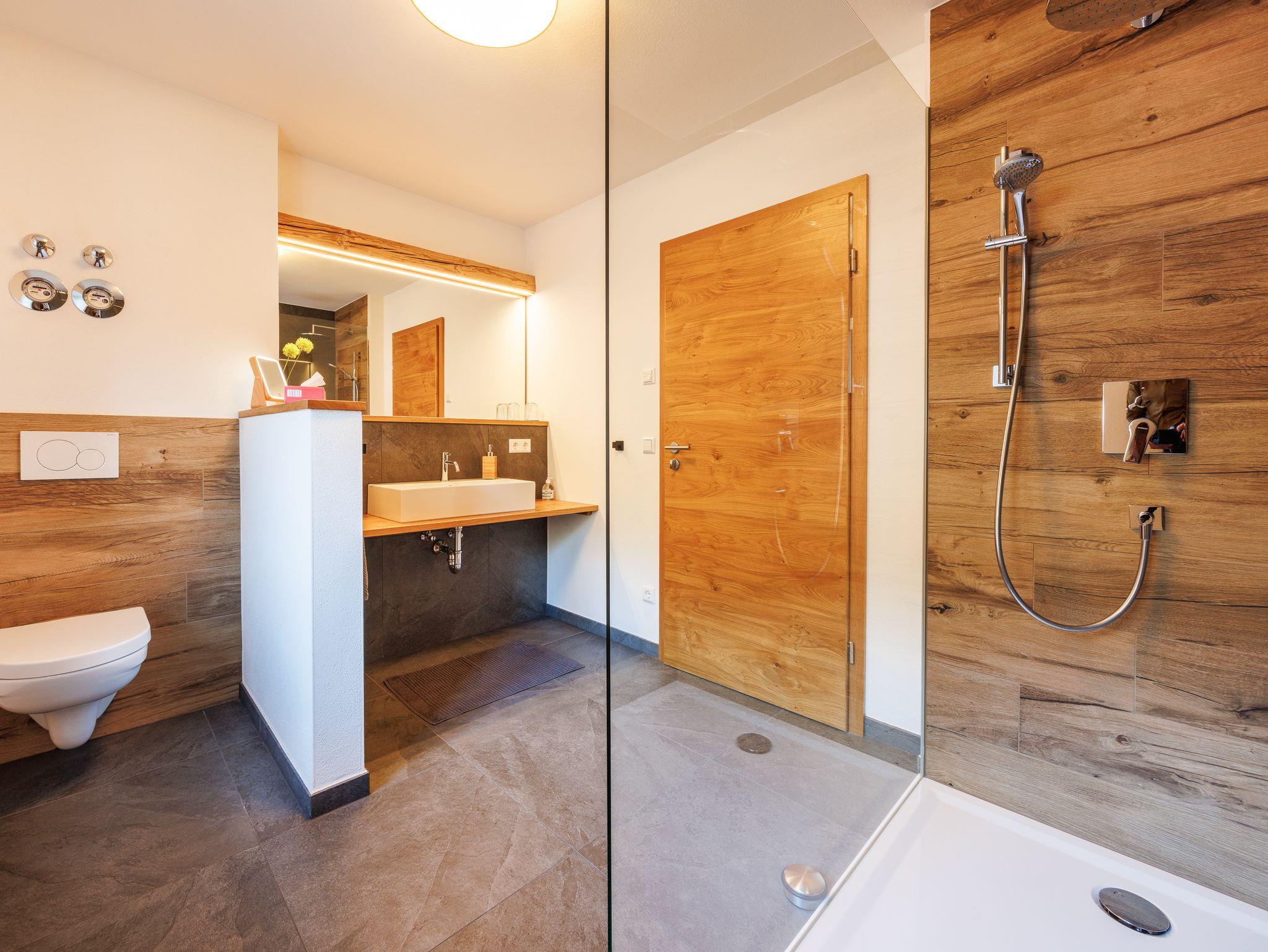 Neu gestaltete Ferienwohnung (89 m²) für 1-4 Personen mit zwei Schlafzimmern in ruhiger sonniger Lage, ca. 20 Gehminuten vom Ortskern. Großzügige Räumlichkeiten mit hochklassiger Einrichtung bieten allen Komfort. Die modere Küche mit Kochblock und umfangreicher Küchenausstattung sowie das Bad mit geräumiger Regendusche lassen keine Wünsche offen. Auf dem traumhaft schönen überdachten Süd-West-Balkon (ca. 20 m²) mit Blick auf den Rauschberg laden eine gemütliche Sitzgruppe und Sonnenliegen zum Genießen ein. Die Wohnung verfügt über kostenloses WLAN, dezentrale Wohnraumbelüftung und Fußbodenheizung. Ein Kinderbett sowie einen Hochstuhl stellen wir gerne auf Anfrage zur Verfügung.