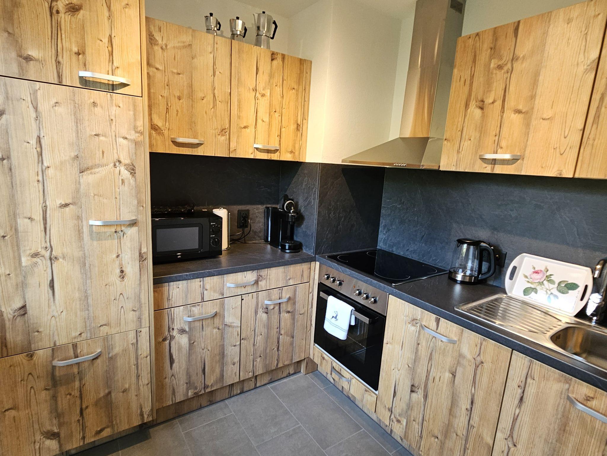 • Küche mit Spülmaschine, Kühlschrank mit Gefrierfach, Backofen, Cerankochfeld, Toaster, Wasserkocher, Mikrowelle, Pad- u. Filterkaffeemaschine etc.