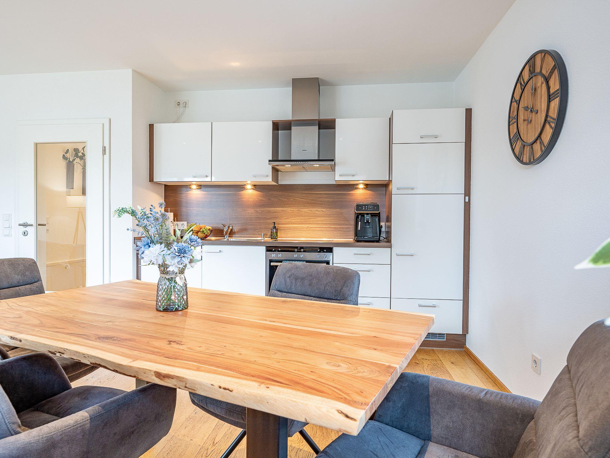 Die Ferienwohnung Hochfelln im ersten Stock eines modernen Neubaus verbindet stilvolles Design mit behaglichem Wohnkomfort. Auf großzügigen 60 m² bietet sie viel Raum zum Entspannen und ist ideal für bis zu drei Personen.