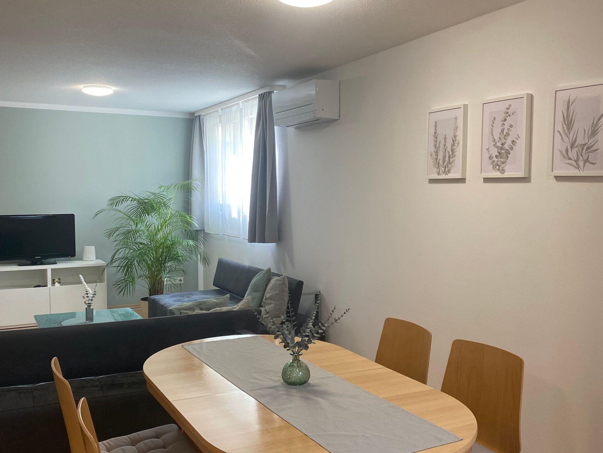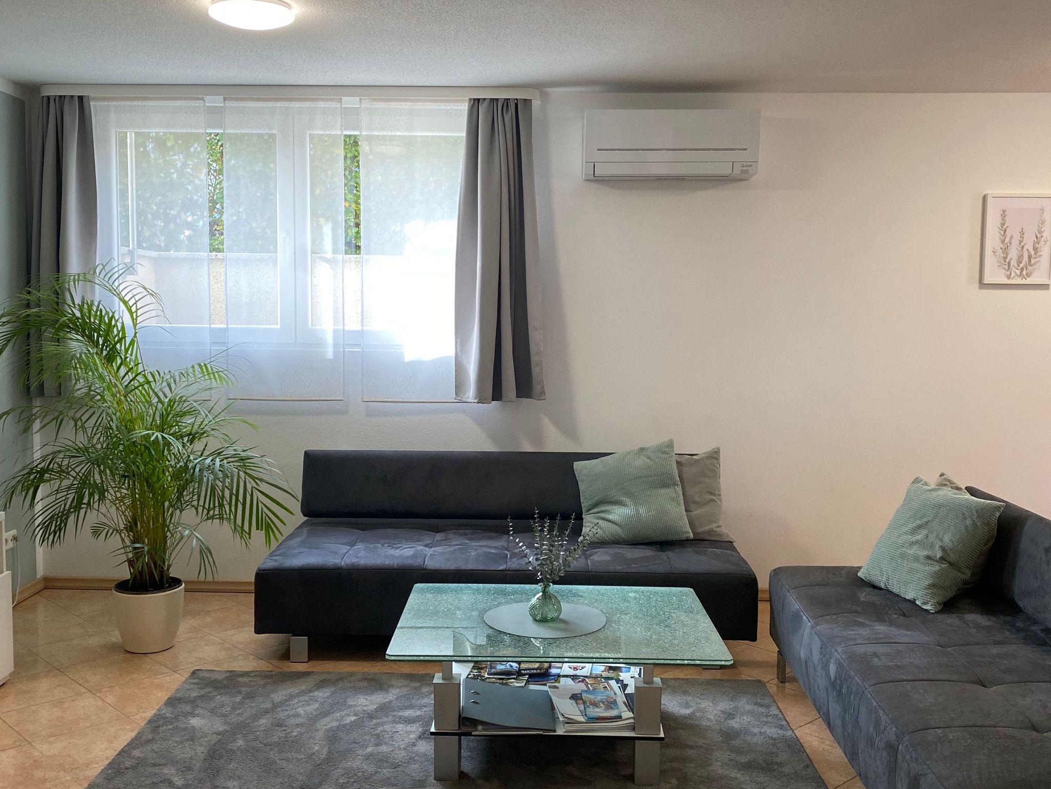 2 Wohn- und Schlafräume, komplett eingerichtete Wohnküche, Dusche und WC, TV,Klimaanlage.Handtücher und Bettwäsche vorhanden.