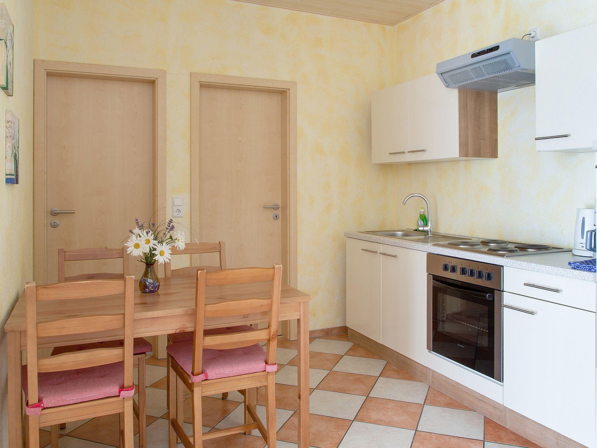Das Apartment im Obergeschoss ist 45qm groß und bietet Platz für bis zu 6 Personen. Das Apartment verfügt über 2 separate Schlafzimmer- ein Schlafraum mit Doppelbett, sowie einem weiteren Schlafraum mit 2 Etagenbetten, einen offenen Wohn-und Essbereich mit Sat-TV und Kochnische, Balkon sowie Dusche/WC. Vor Ort fällt eine Kurtaxe in Höhe von 1,00 EUR pro Person pro Tag an. Kinder von 0-11 Jahren zahlen keine Kurtaxe.