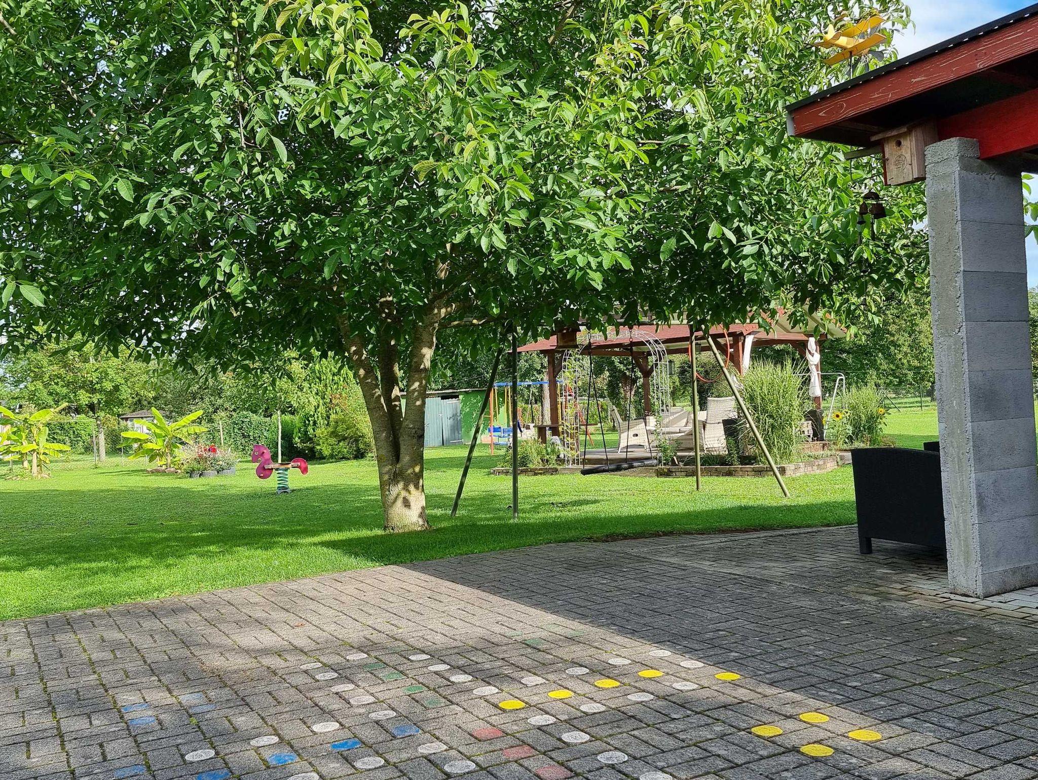 Ruhige Lage, Kinderspielplatz im schönen grossen Garten, sehr freundliche Gastgeber, verhältniss grosses Frühstücksbuffet