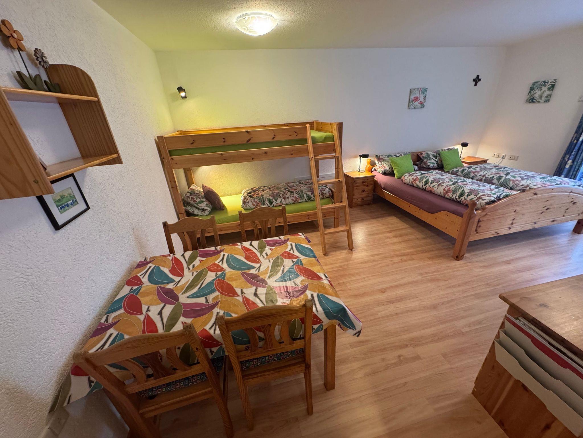 Die Nichtraucher-Ferienwohnung ist geeignet für max. 4 Personen und ist ausgestattet mit WC und Badewanne, einem kombinierten Wohn-Schlafbereich mit einem Doppelbett und einem Etagenbett, sowie Schreibtisch, Essecke und TV. Unseren Gästen steht WLAN zur Verfügung. Die separate Küche verfügt über einen Backofen, Kochgelegenheit, Kaffeemaschine, Kühlschrank und Wasserkocher. Handtücher und Bettwäsche sind vorhanden. Der Schlafraum ist mit einer Klimaanlage ausgestattet. Vor Ort fällt bis ende 2025 eine Kurtaxe in Höhe von 1 EUR pro Person pro Tag an. Ab 2026 fällt eine Kurtaxe in Höhe von 1,45 EUR pro Person pro Tag an. Kinder von 0-11 Jahren zahlen keine Kurtaxe.