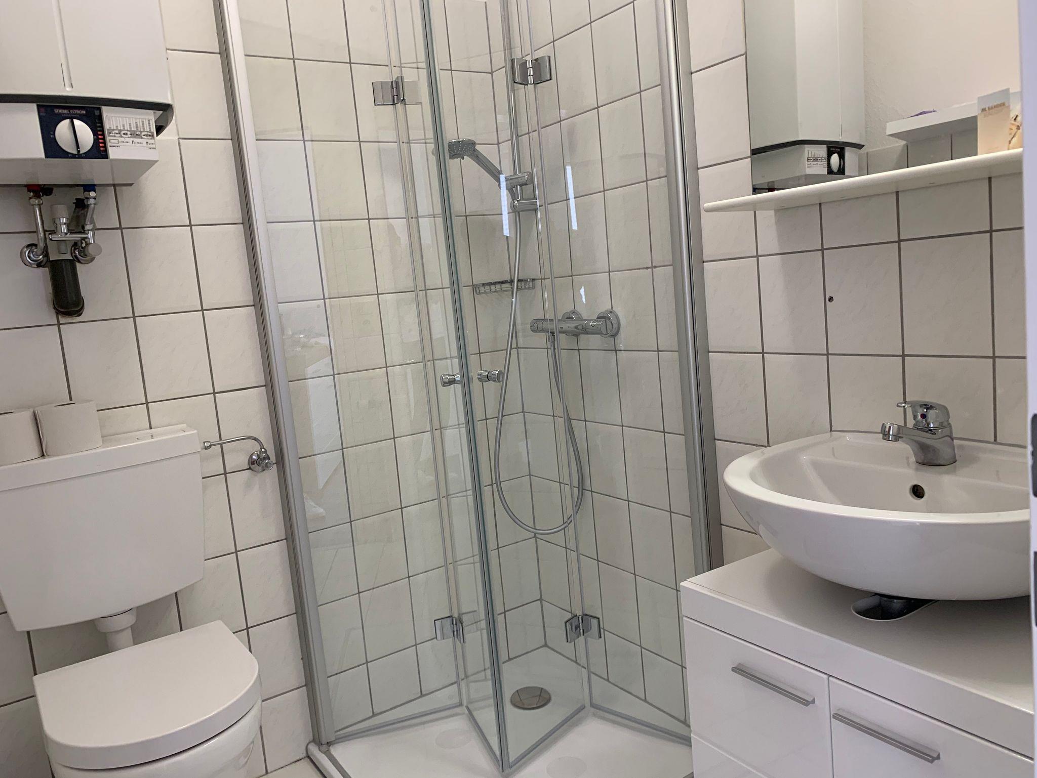 Der Wohn- und Schlafraum ist mit einem hochwertigen Komfort-Schlafsofa ausgestattet, das über einen Lattenrost und eine Gelmatratze verfügt und somit optimalen Schlafkomfort bietet. Das moderne Badezimmer überzeugt mit einer ebenerdigen Dusche für ein bequemes Duscherlebnis.