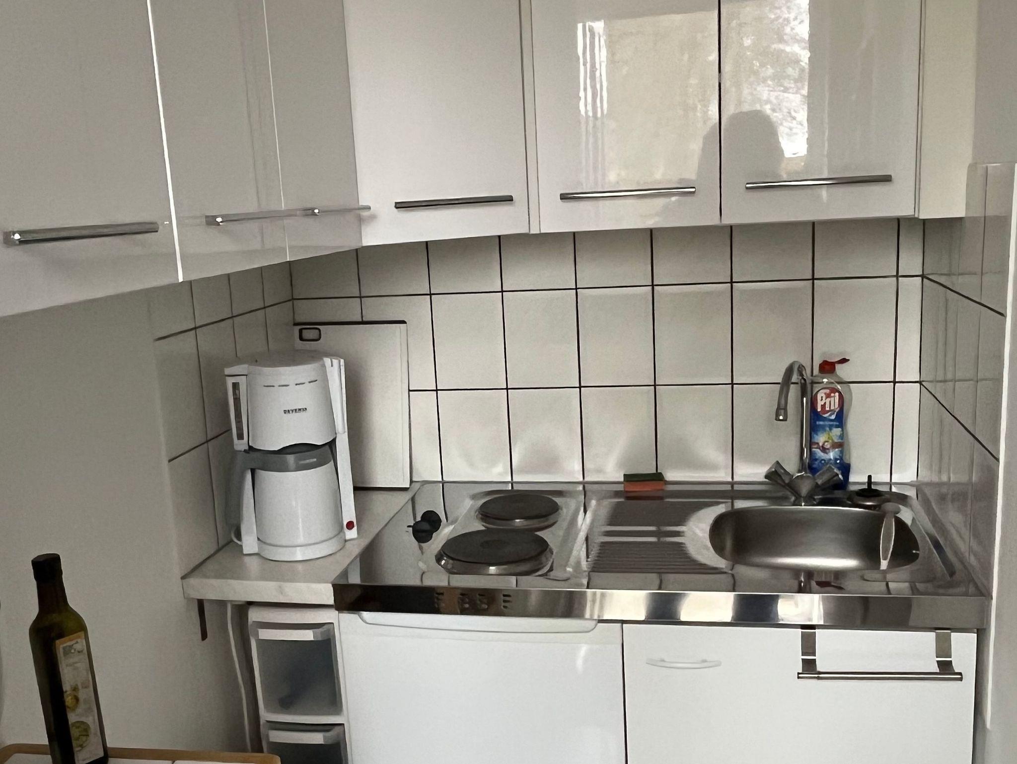 Ein gemütlicher Essbereich und eine gut ausgestattete Küchenzeile stehen Ihnen ebenfalls zur Verfügung. Die zentrale Raumaufteilung ermöglicht einen schnellen Zugang zu allen Bereichen, einschließlich eines modernen Badezimmers.