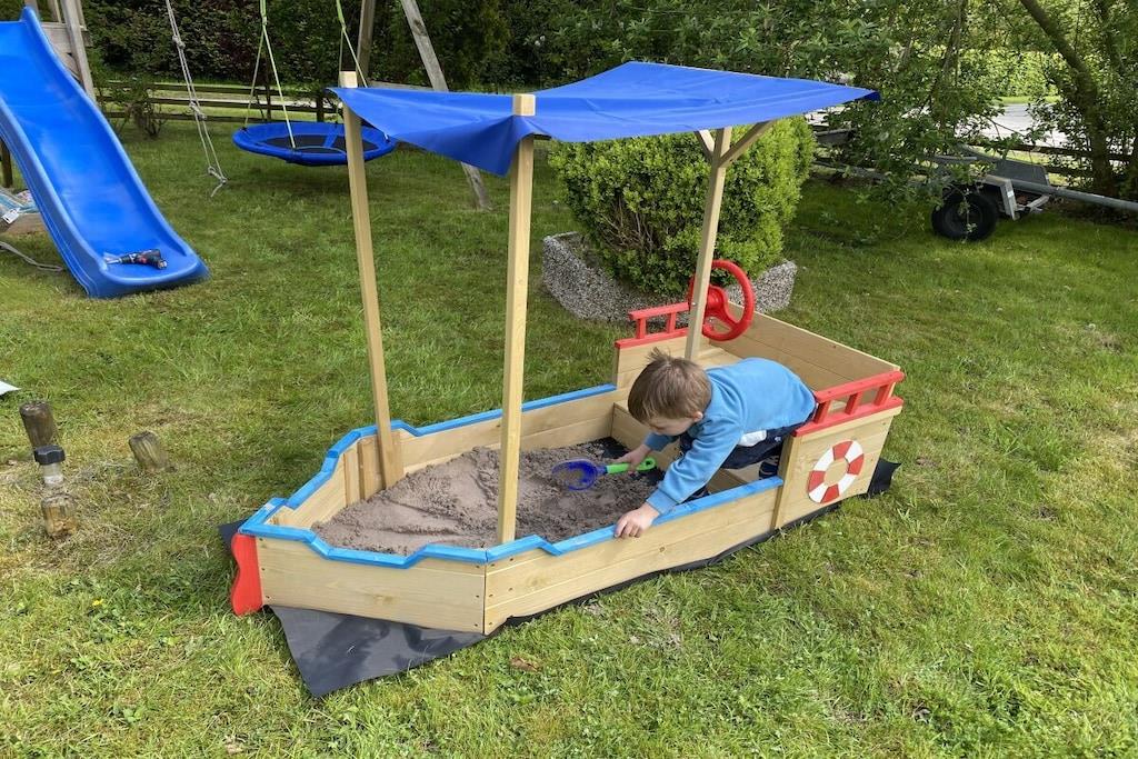 Freshly renovated holiday home in a dream location for the whole family! Everyone gets their money's worth here. The large property with its own garden and climbing frame makes it ideal for families with children. Your own rowing boat is right in front of the terrace, from which you can experience a wonderful sunset. The grill and fireplace invite you to relax. In the middle of a holiday home settlement, which is very quietly located in the East Frisian nature, you can relax in a natural way. The holiday home also offers two kayaks with which you can explore the canals and lakes. Fishing, swimming, surfing, hiking and cycling to the "Großes Meer" nature reserve are great ways to spend your time. The house has a master bedroom with a double bed and a children's bedroom with 2 beds. This room is perfectly equipped for the little ones with a children's table, toys, painting supplies and books: We have lovingly furnished it and our 4-year-old son thinks it's great :-)
