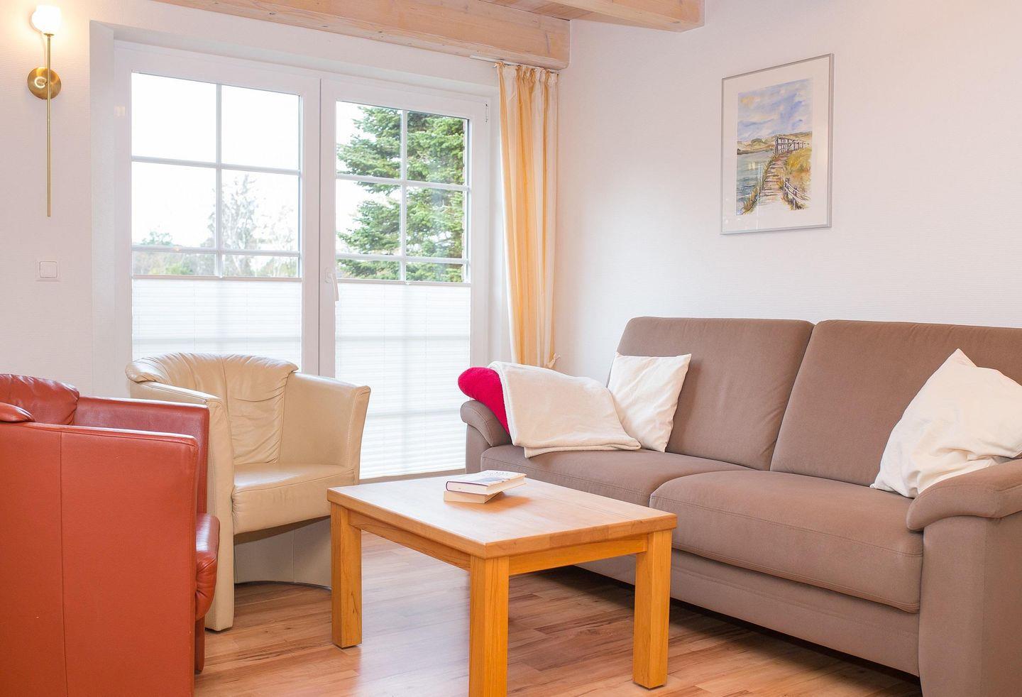 Die 40 bis 90 m² großen Ferienwohnungen im Hüs in Lee mit Terrasse im großen Garten, bieten für 2 bis 4 Personen.