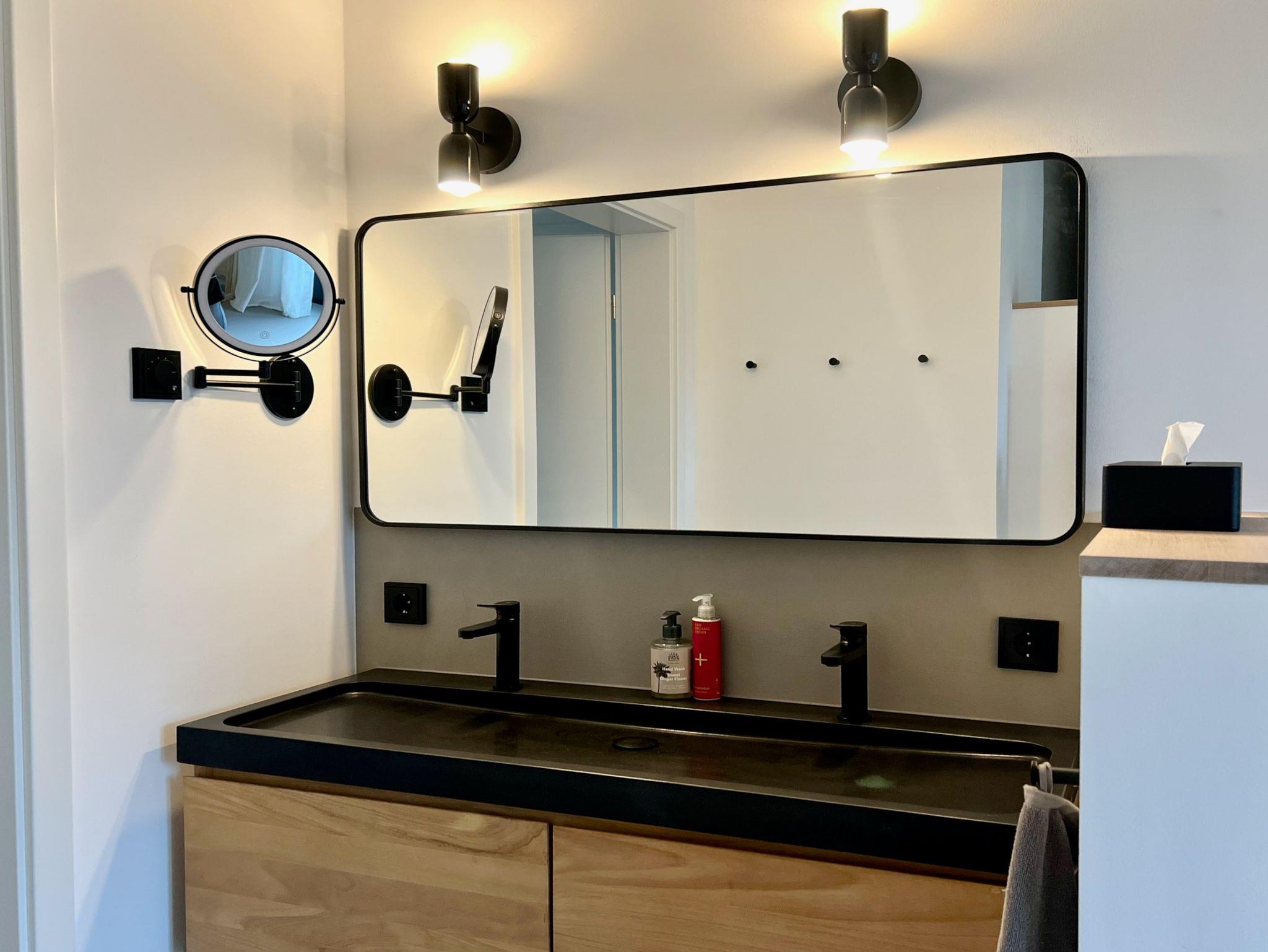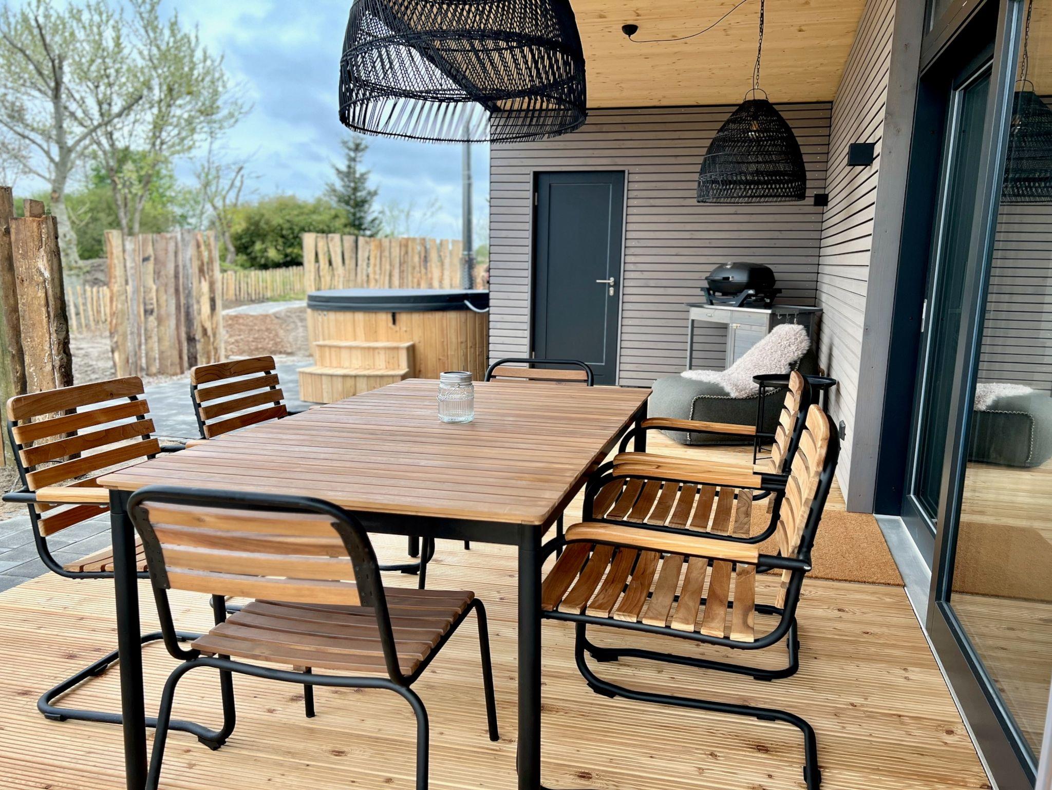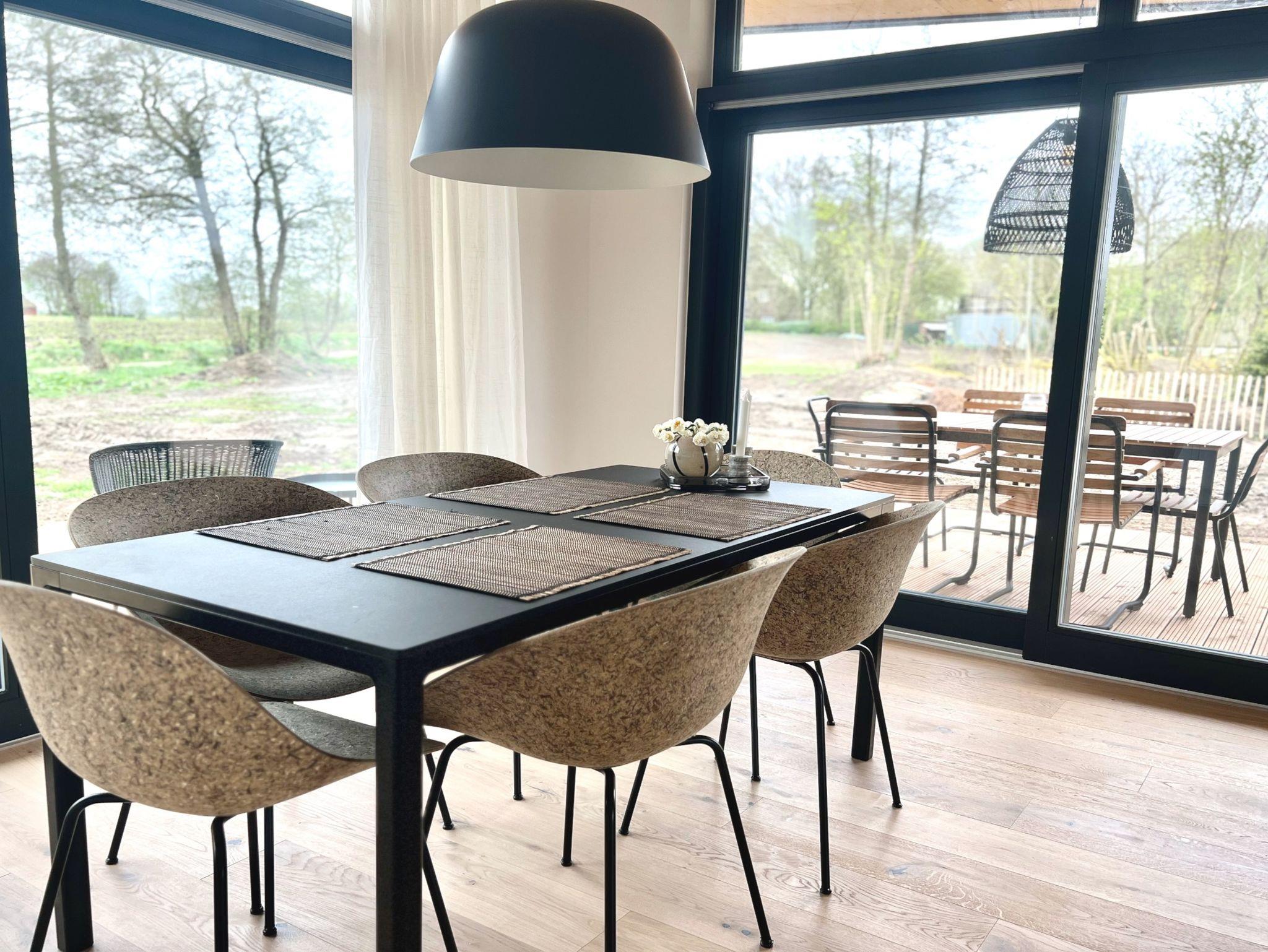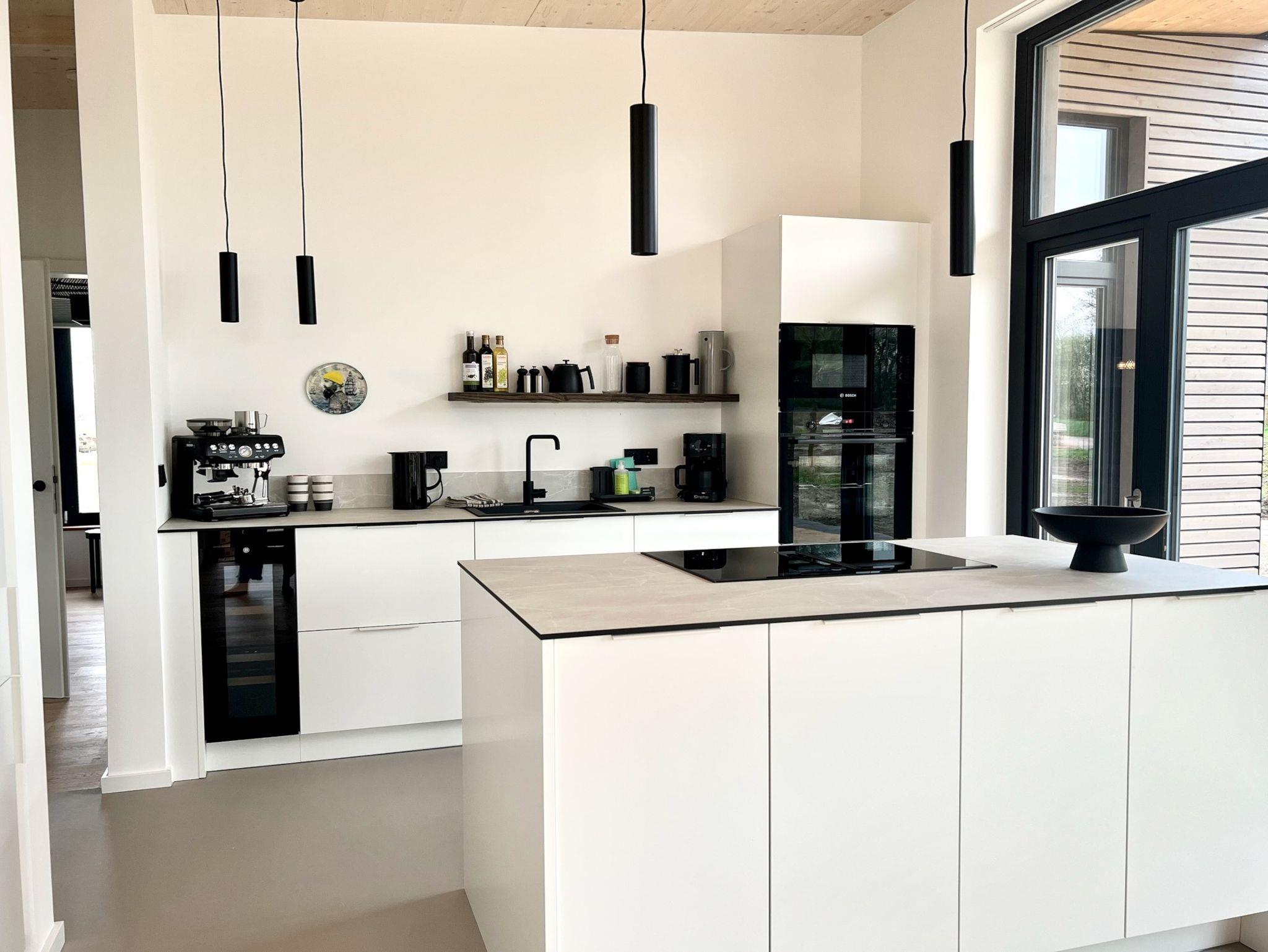 Moderne Architektur und Design trifft auf Natur Nur 50 Meter vom Hof entfernt liegt dieses 2025 zu Ostern fertiggestellte Designhaus mit eigenem Strand. Auf 100 m² Wohnfläche bietet es Komfort und einen besonderen Charme von Entspannung und Leichtigkeit durch die schwarz-weiße gewählte Einrichtung, kombiniert mit natürlichen Elementen. Zwei Schlafzimmer für 4-5 Personen, große Fenster mit weitem Blick und überdachte Terrassen schaffen einen idealen Rückzugsort. Der großzügige Wohn- und Essbereich mit Kamin und die voll ausgestattete Küche mit Weinkühlschrank laden zum Verweilen ein. Ein Wellnessbad mit freistehender Badewanne, Panoramablick und Sauna sowie ein Außenbereich mit Hot Tub und Außendusche sorgen für Entspannung pur. Ein Ort, der Ruhe, Natur und Stil vereint – perfekt zum Abschalten!