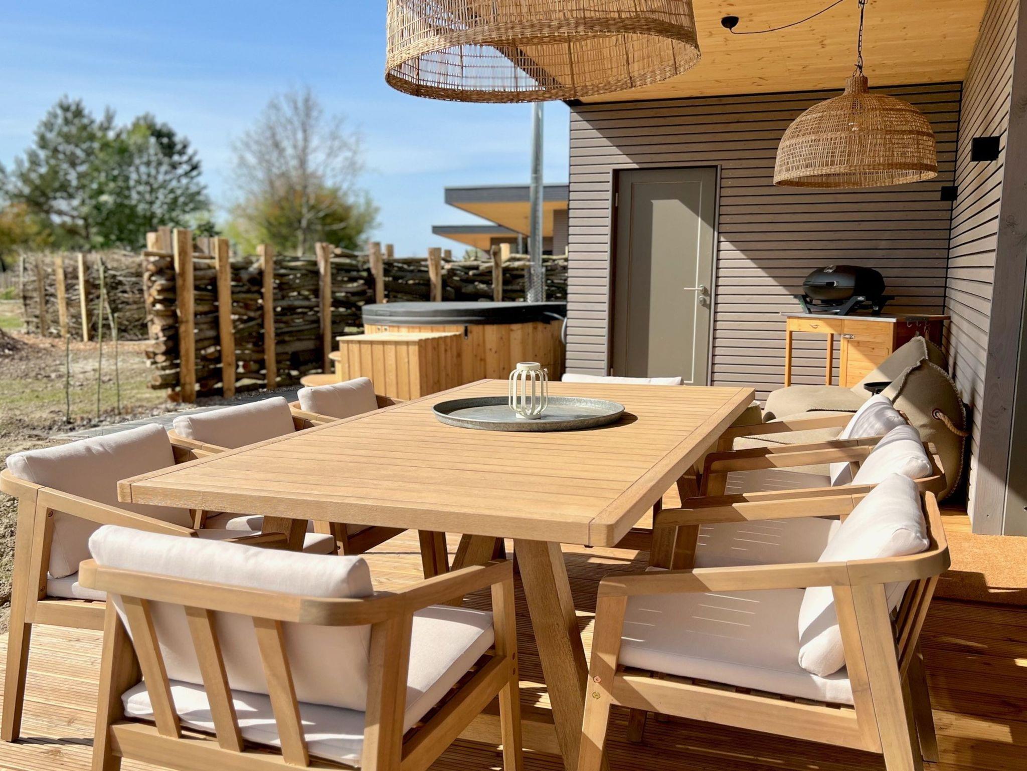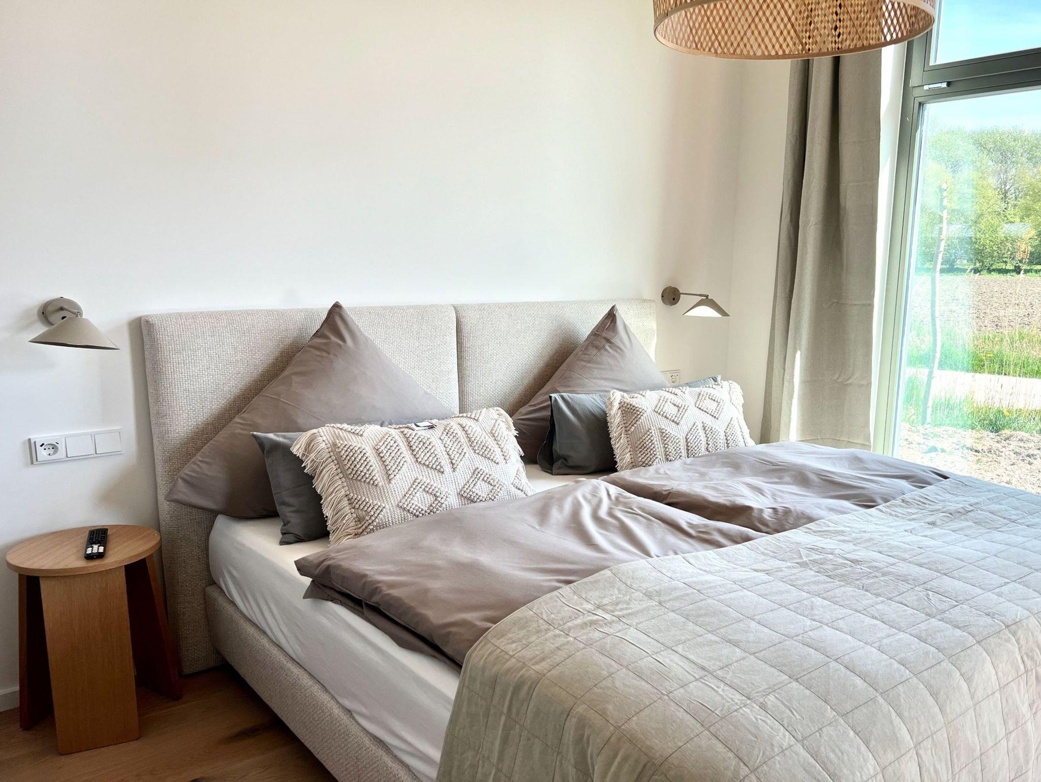 Moderne Architektur und Design trifft auf Natur Dieses exklusive Designhaus, nur 50 Meter vom Hof entfernt, wurde Ostern 2025 fertiggestellt und bietet auf 130 m² Wohnfläche jeden Komfort. Der natürliche Einrichtungsstil mit warmen Tönen und organischen Materialien schafft eine harmonische Atmosphäre. Mit drei Schlafzimmern für bis zu 6 Personen, großen Fenstern mit weitem Blick und überdachten Terrassen ist es der perfekte Ort für Familien und Freunde. Ein großzügiger Wohn- und Essbereich mit Kamin sowie eine voll ausgestattete Küche mit Weinkühlschrank laden zum Genießen ein. Das Wellnessbad mit freistehender Badewanne, Panoramablick und Sauna sowie der Außenbereich mit Hot Tub und Außendusche machen diesen Rückzugsort perfekt. Ein Ort, um Ruhe, Weite und Natur zu erleben – Architektur zum Wohlfühlen!