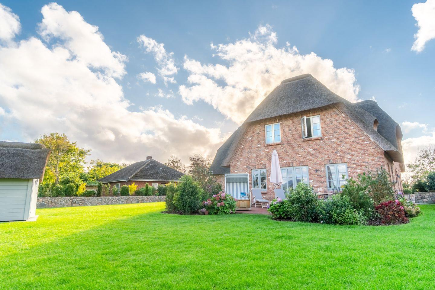 Die reetgedeckte Doppelhaushälfte Meggis Hüs verfügt über 3 Schlafzimmer und 3 Bäder und bietet komfortabel Platz für bis zu 6 Personen zuzüglich einer Kleinkinderaufbettung. Auch ein kleiner Hund ist hier herzlich willkommen.