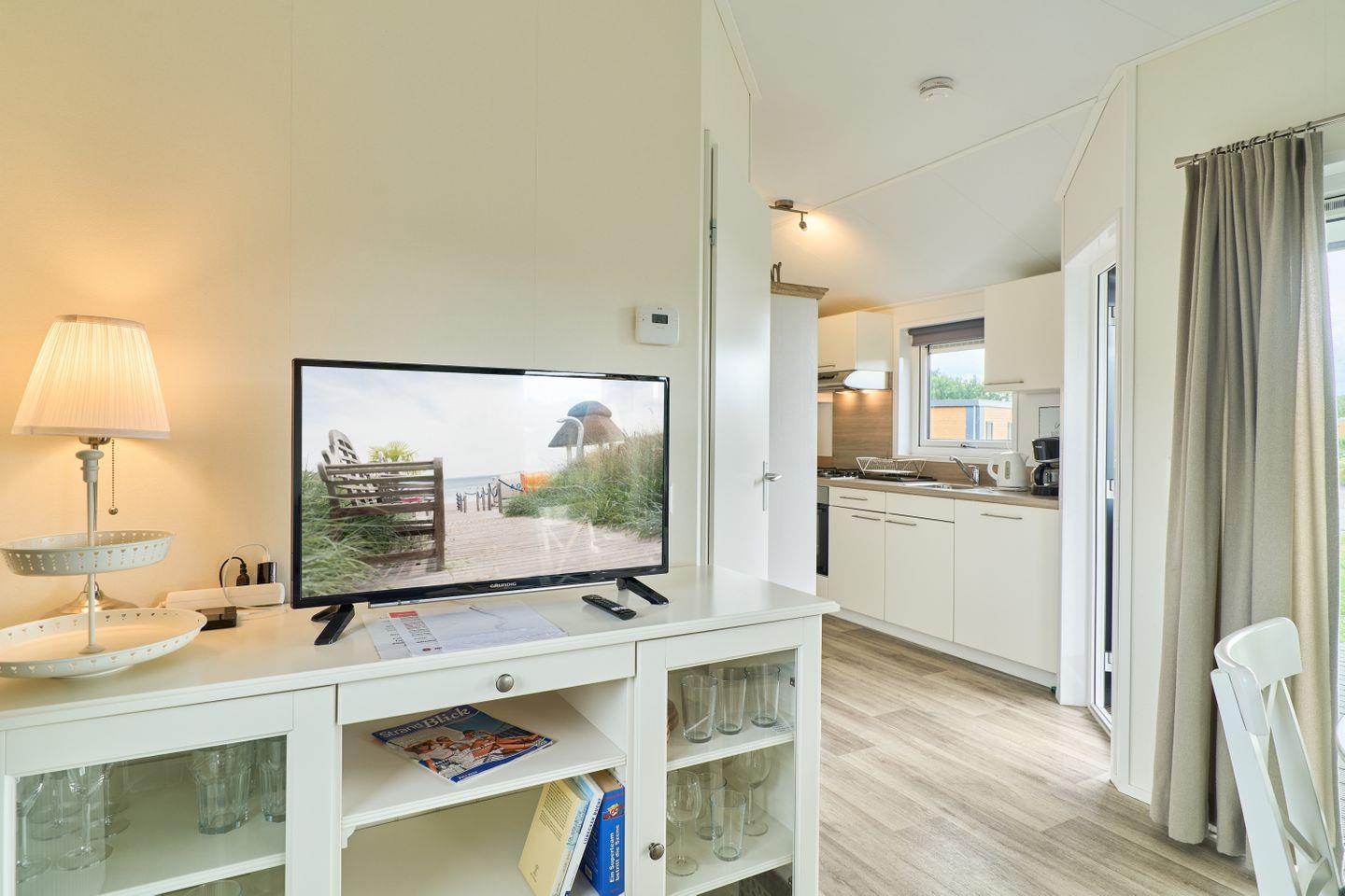 Das Wohnzimmer verfügt neben einem bequemen Sofa über einen Fernseher. Für Unterhaltung und Arbeitsmöglichkeiten steht Ihnen kostenfreies WLAN zur Verfügung. Alle Fenster sind mit Sichtschutz ausgestattet. Im Schlafzimmer sowie im Wohnbereich sorgen Garderobe und Stauraum für Ordnung während Ihres Aufenthalts.