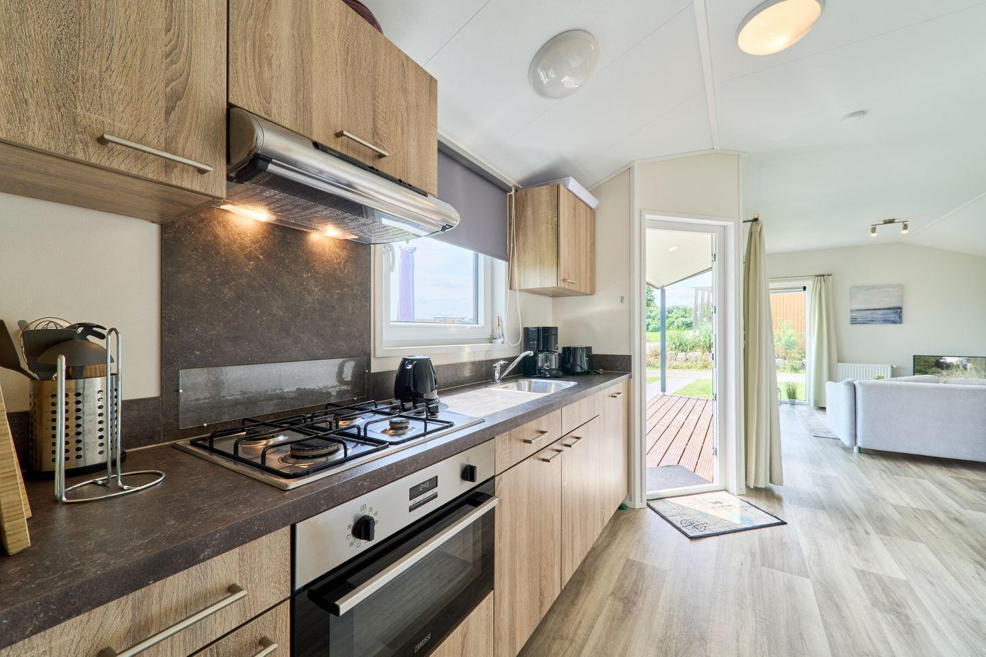 Das Ferienhaus ist für Familien mit Kindern hervorragend geeignet und zeichnet sich durch kinderfreundliche Ausstattung sowie einen Spielplatz in der Ferienanlage aus. Babys sind ebenfalls herzlich willkommen. Die moderne Raumaufteilung mit offen gestalteter Küche zum Wohnzimmer schafft eine angenehme Wohlfühlatmosphäre, die durch ein komfortables Sofa und einen Esstisch ergänzt wird. Die Küchenzeile ist mit Herd, Backofen, Kühlschrank, Gefrierfach, Spülmaschine, Kaffeemaschine, Wasserkocher, Toaster und sämtlichen Küchenutensilien ausgestattet und ermöglicht die bequeme Selbstversorgung mit allem, was dazu gehört. Geschirr, Besteck sowie Geschirrhandtücher werden bereitgestellt.