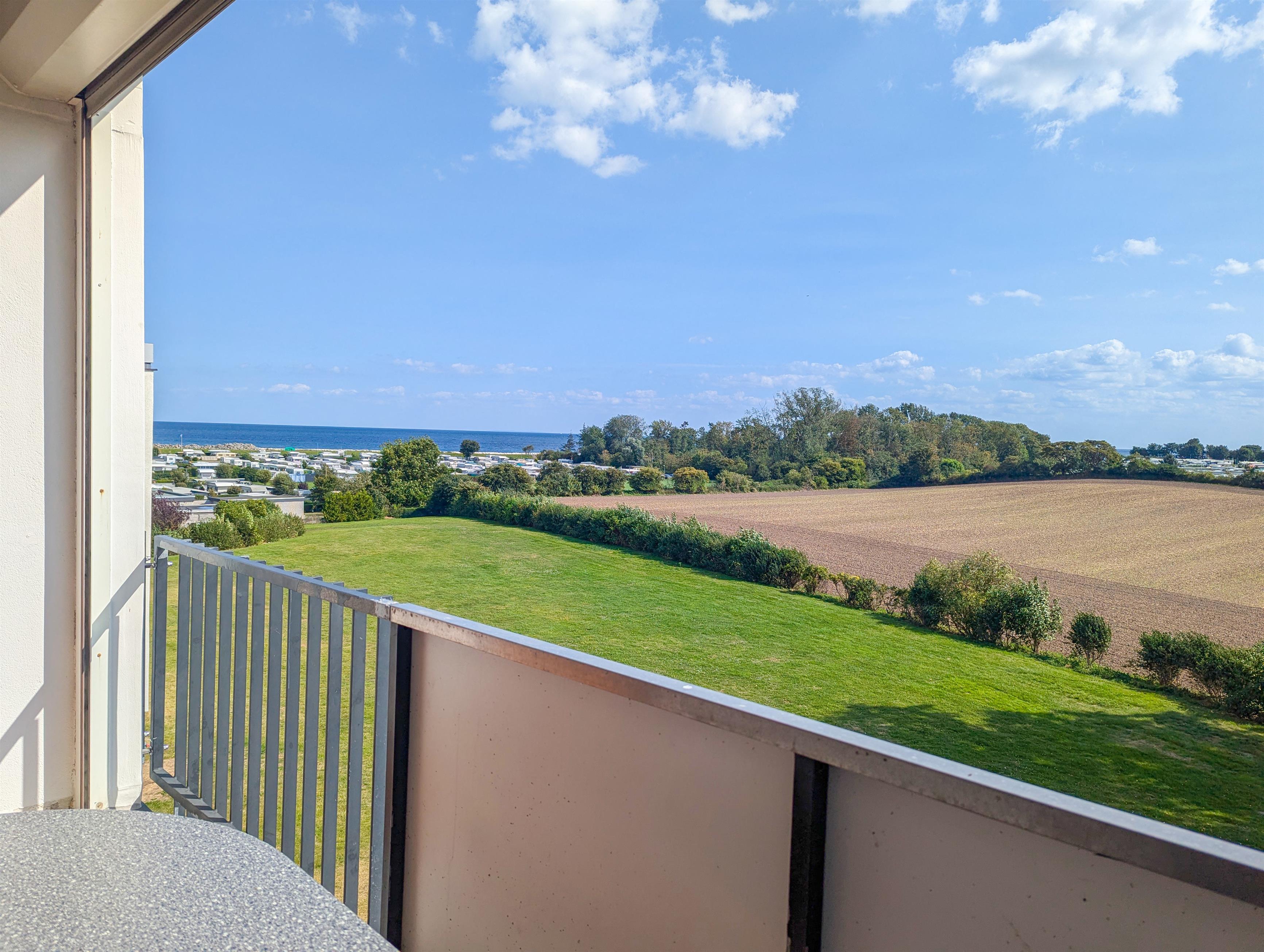 Das Highlight der Wohnung ist die südlich ausgerichtete Loggia, von der aus Sie einen seitlichen Blick auf die Ostsee und frontal auf die Wiesen und Felder haben.