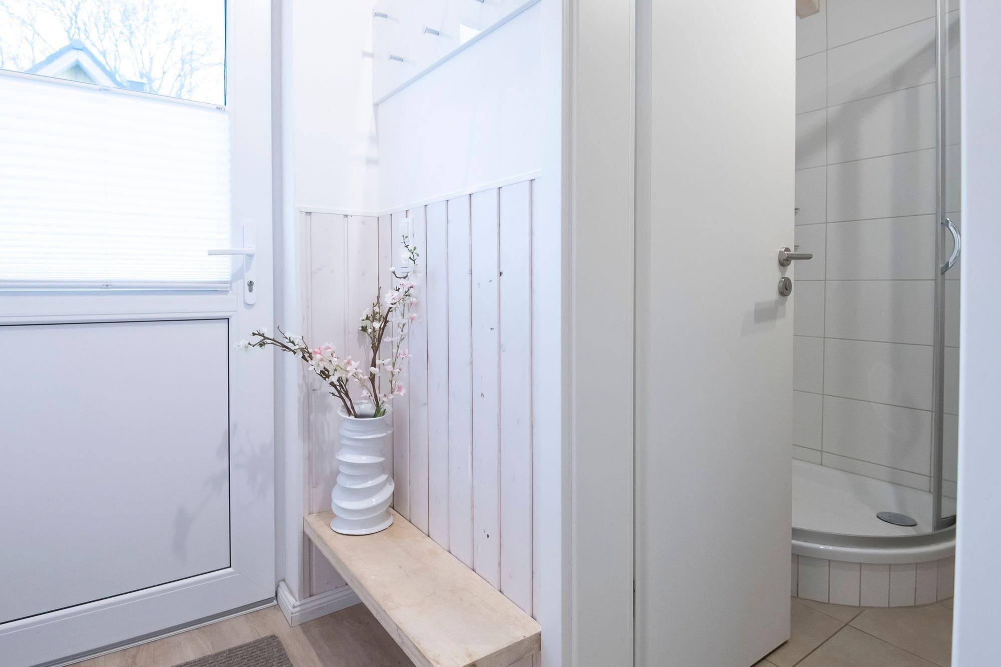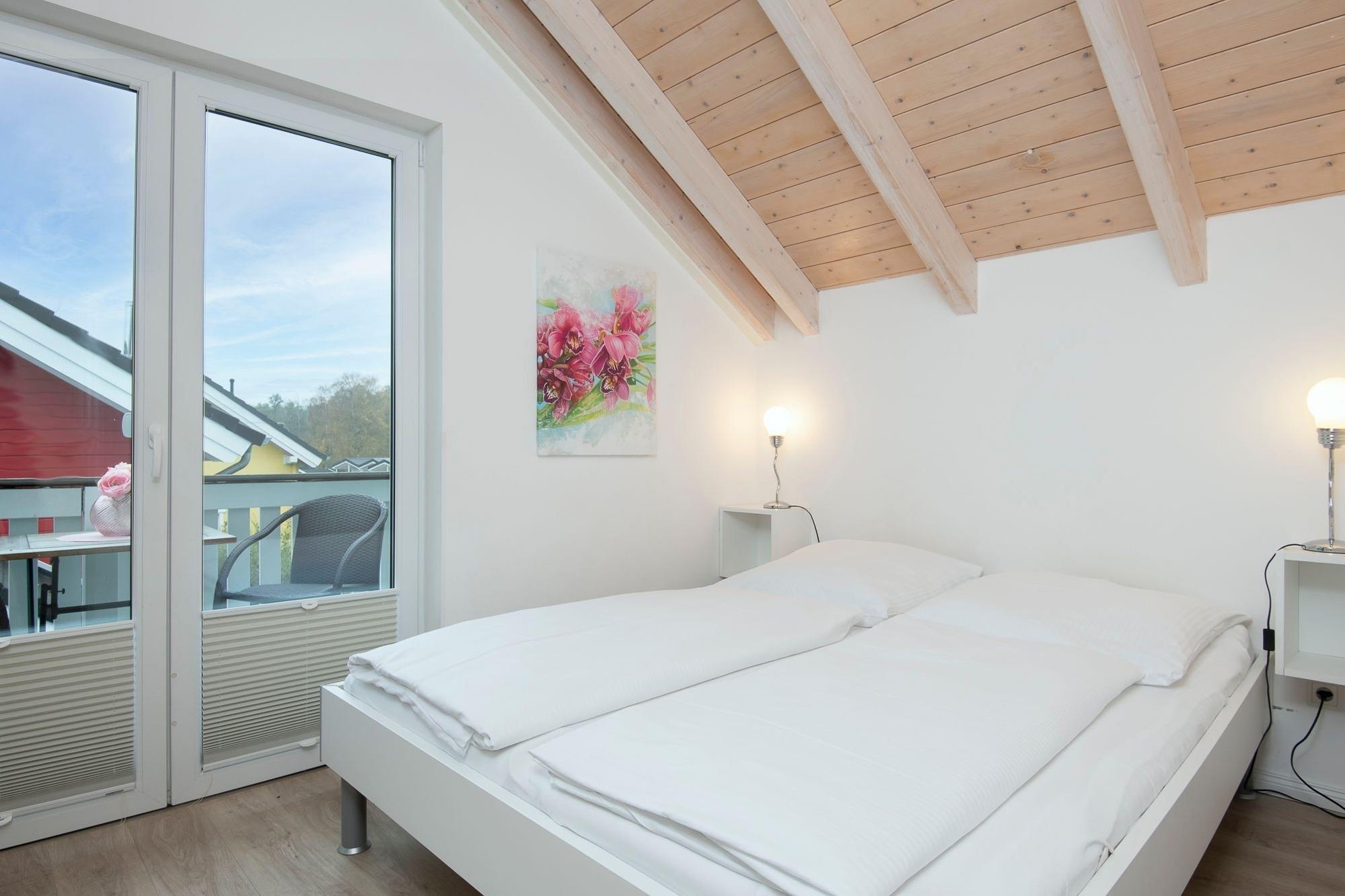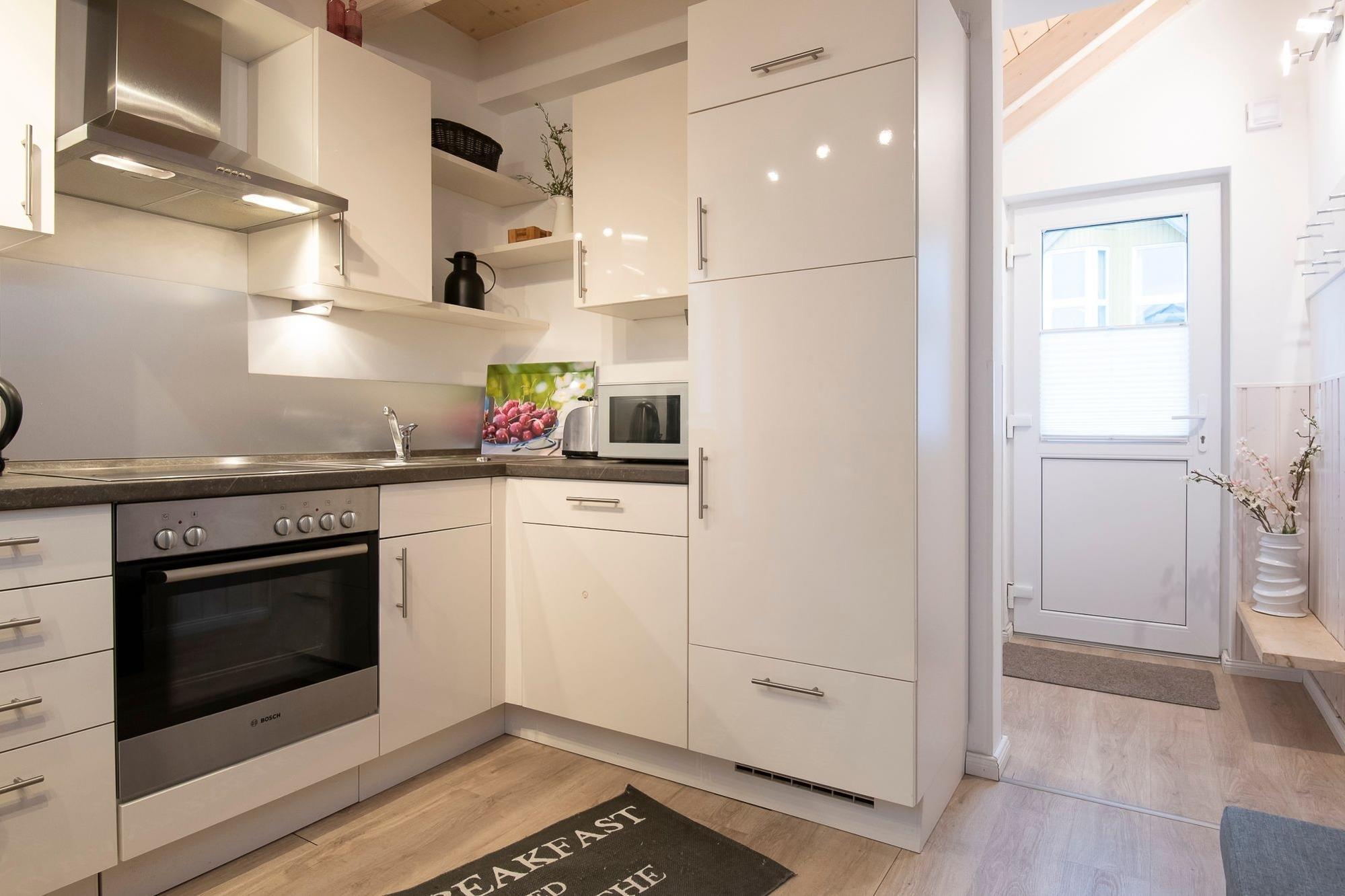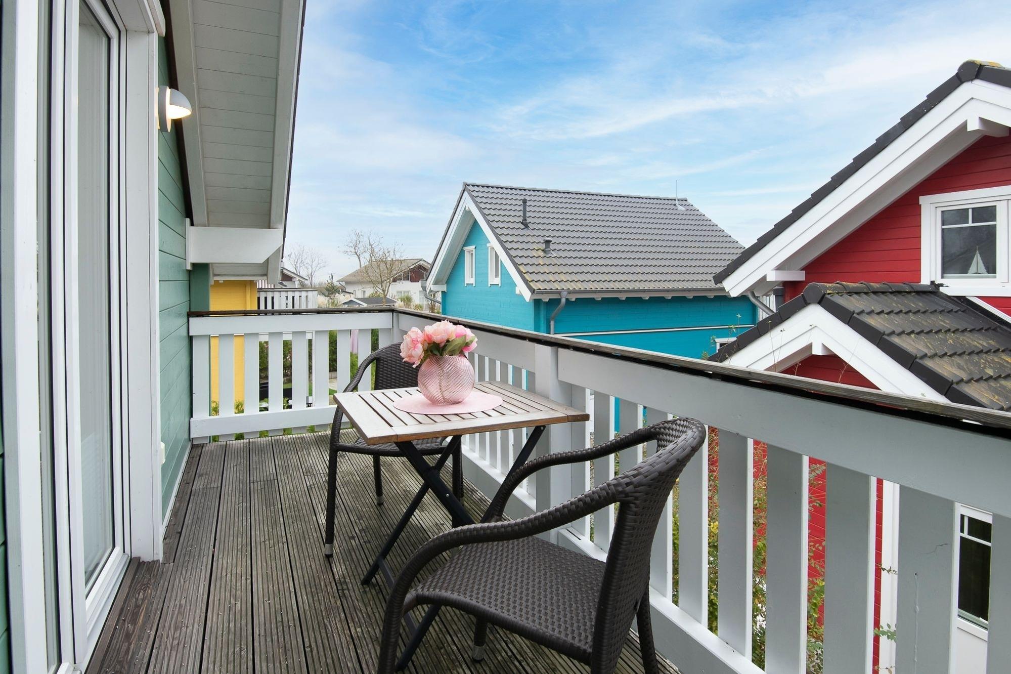 Im Erdgeschoss empfängt Sie ein großzügiger Wohn-/ Essbereich mit gemütlicher Schlafcouch, 2 Sessel und perfekt integrierter Küche, die keine Wünsche offenlässt. Ihre frisch geangelten Fische können Sie bequem im extra großen Gefrierfach lagern. Kreieren Sie köstliche Gerichte mit regionalen Zutaten und genießen Sie entspannte Abende auf der großen Holzterrasse oder vor dem Kamin mit wärmendem Feuer. Erholsame Wärme bietet zudem die Sauna, die für Entspannung der Muskulatur sorgt. In dieser Etage befindet sich außerdem das moderne Badezimmer mit Dusche. Das 1. Obergeschoss bietet Ihnen 2 komfortable Schlafzimmer für erholsame Nächte. Eins ausgestattet mit einem Doppelbett, das Andere mit 2 Einzelbetten. Das hell geflieste und moderne Gäste-WC mit Fenster vervollständigt diese Etage. Vom gemütlichen Südbalkon aus können Sie sogar zeitweise einen Blick auf die Ostsee erhaschen. Der Glasfaser WLAN-Anschluss ist selbstverständlich inklusive.